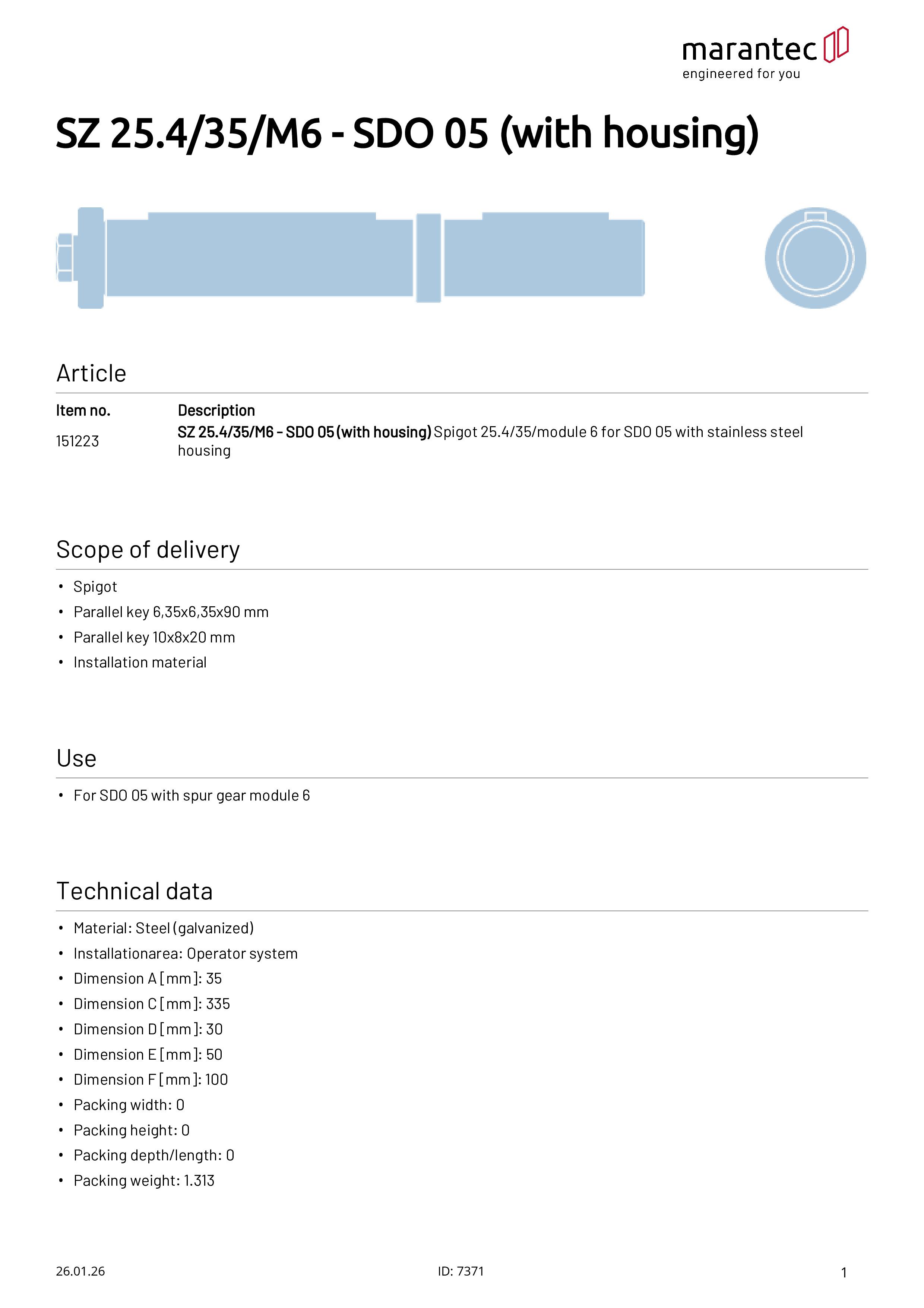 SZ 25,4/35/ Modul 6 - Steckzapfen für SDO 05 mit Edelstahlgehäuse
