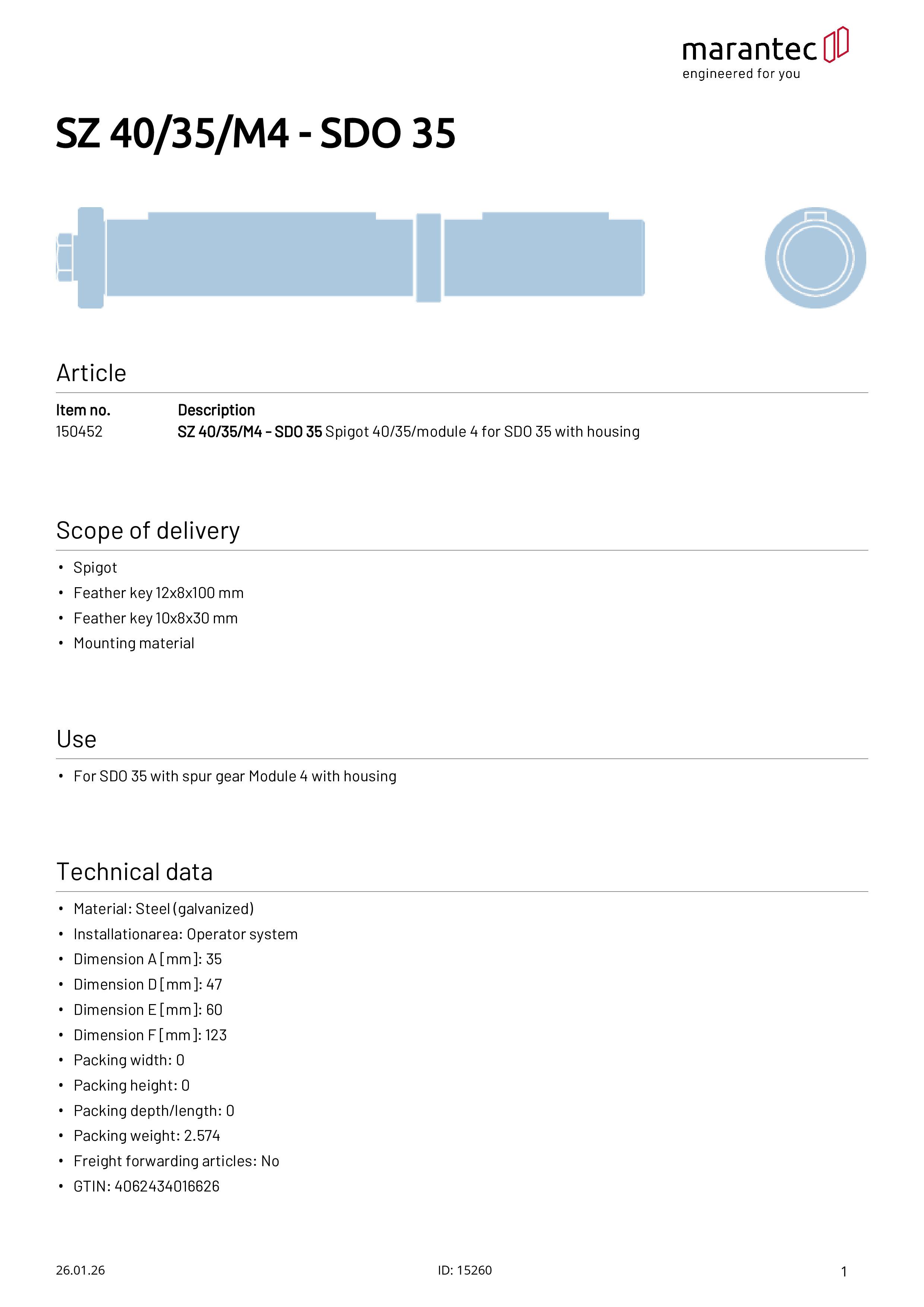 Steckzapfen für SDO 35