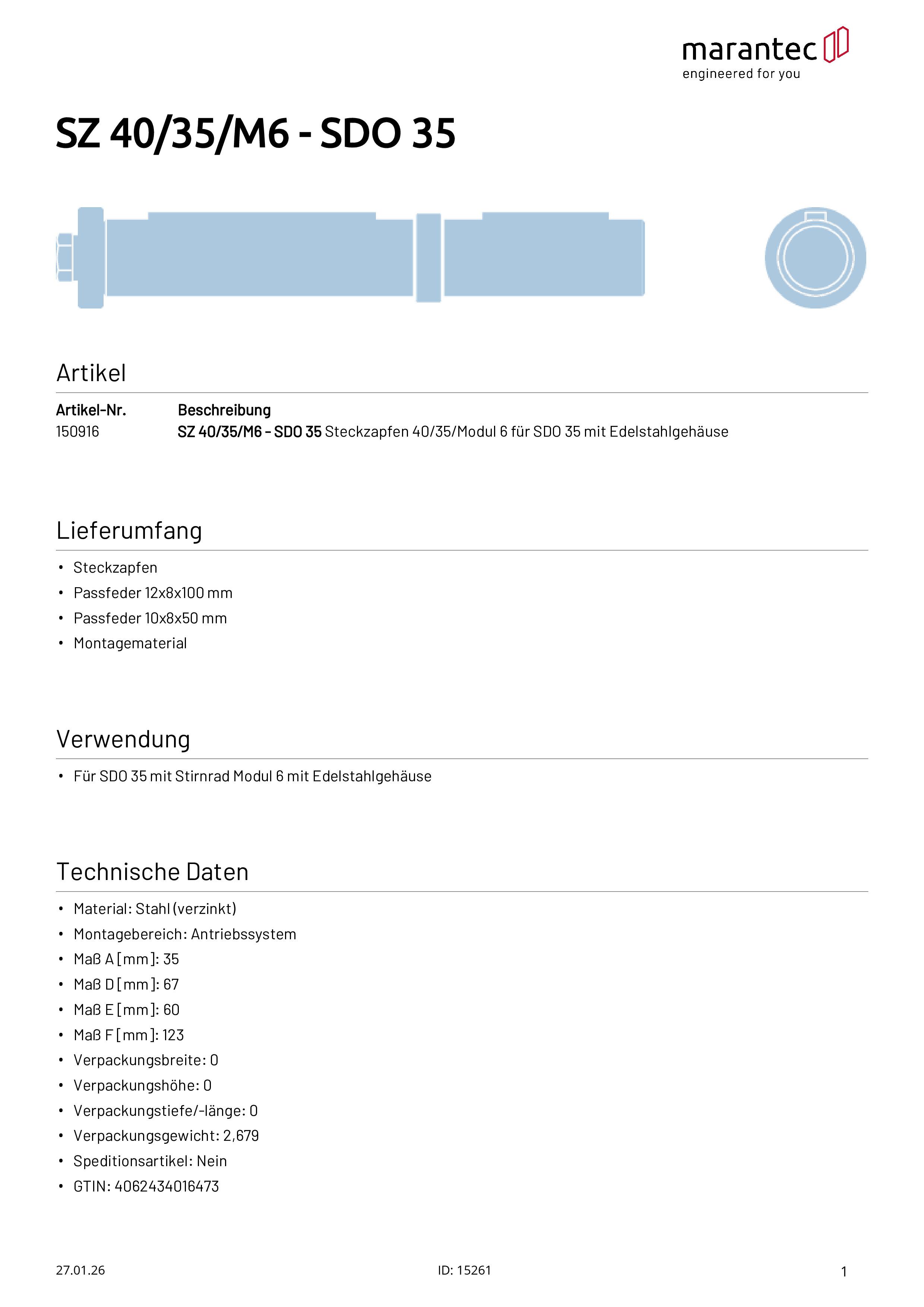 Steckzapfen für SDO 35
