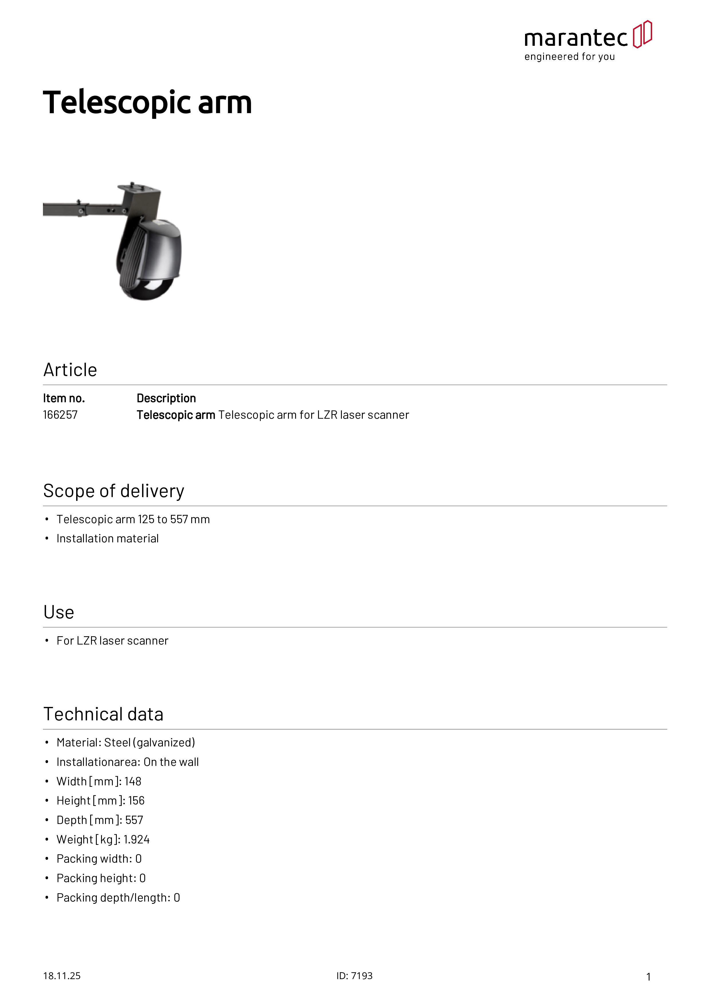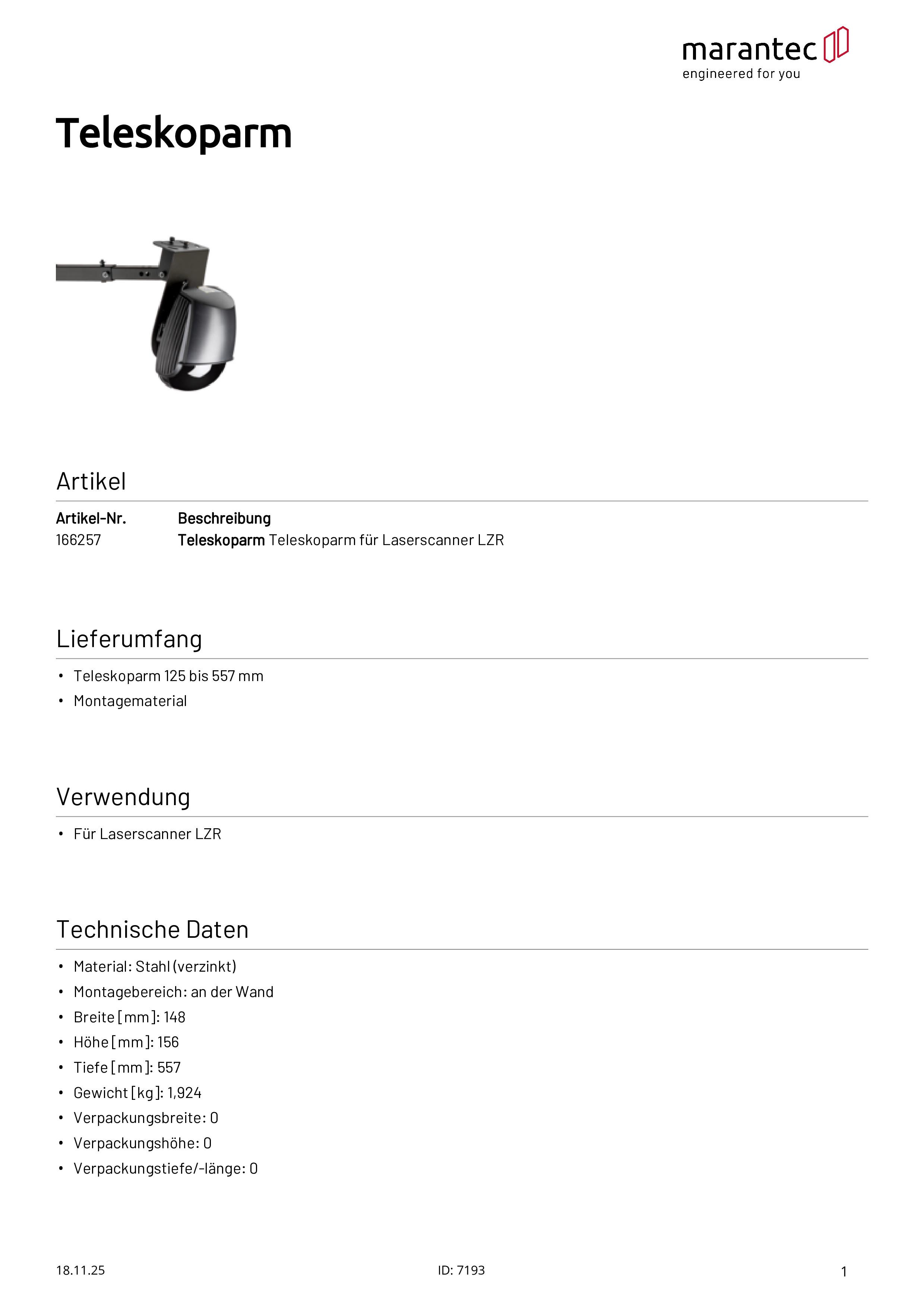 - Teleskoparm 125 bis 557 mm