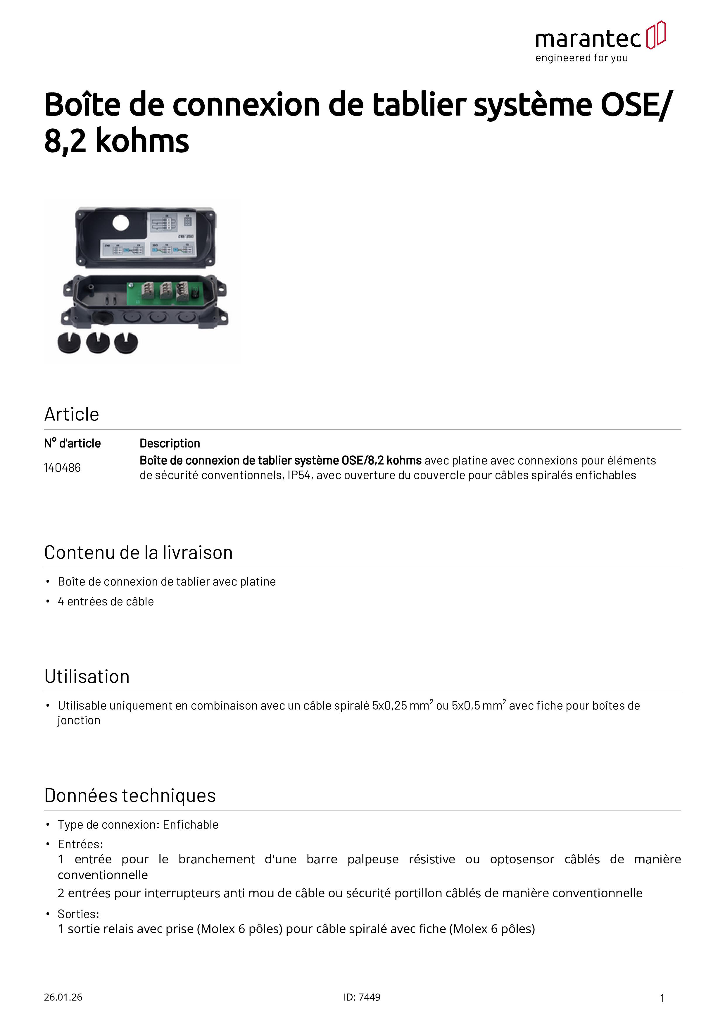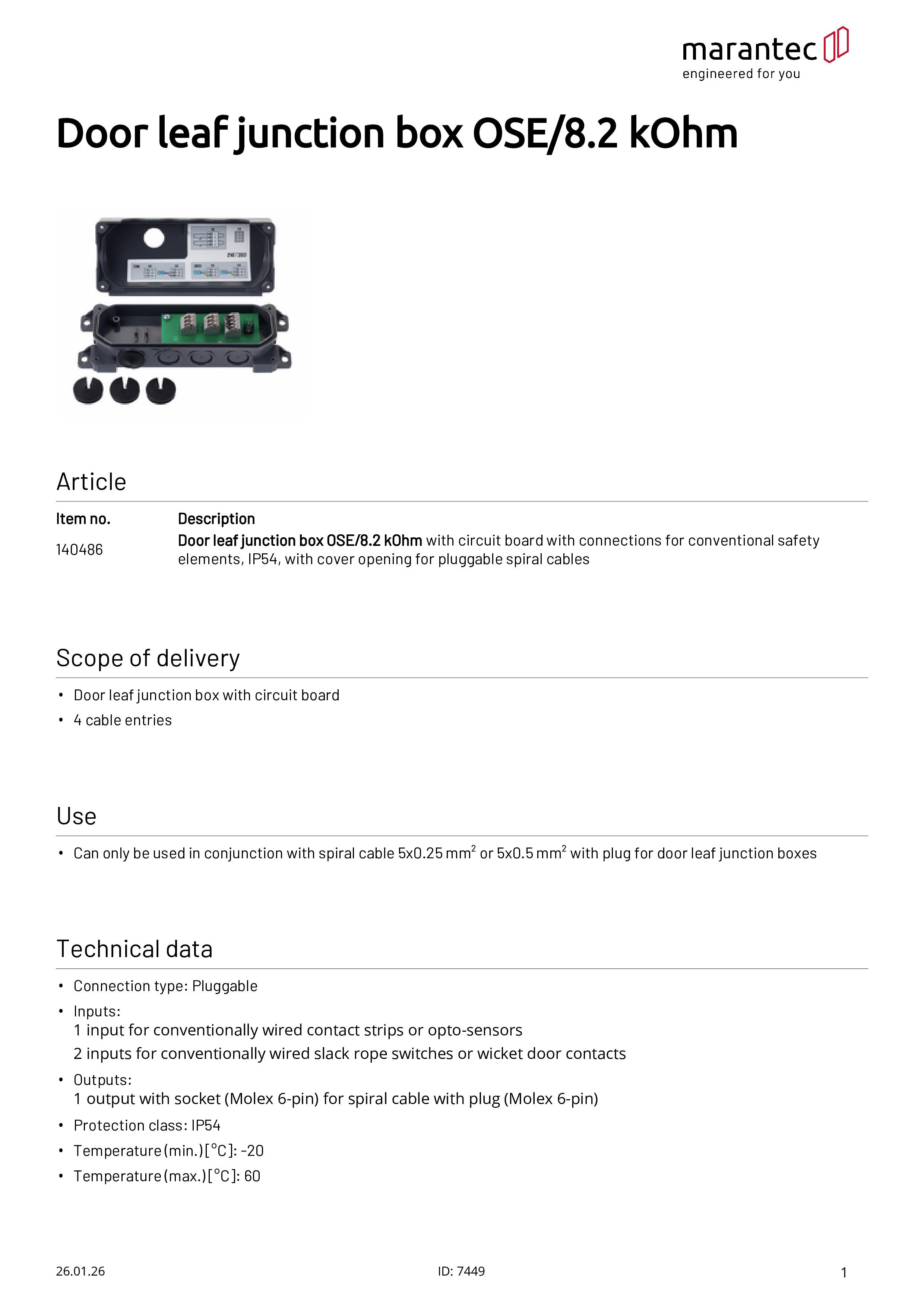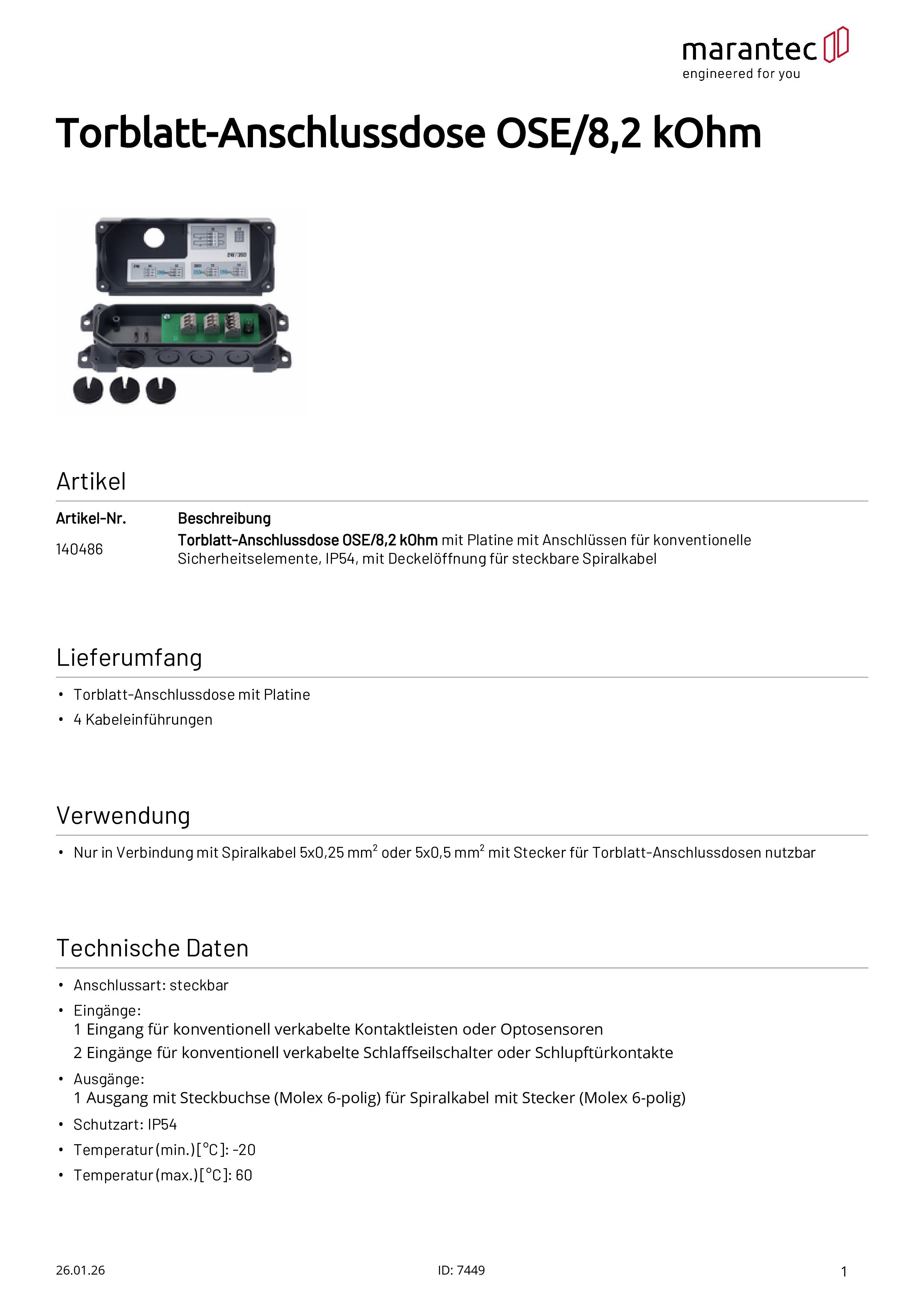 Torblatt-Anschlussdose für OSE/8,2 kOhm (konventionell)