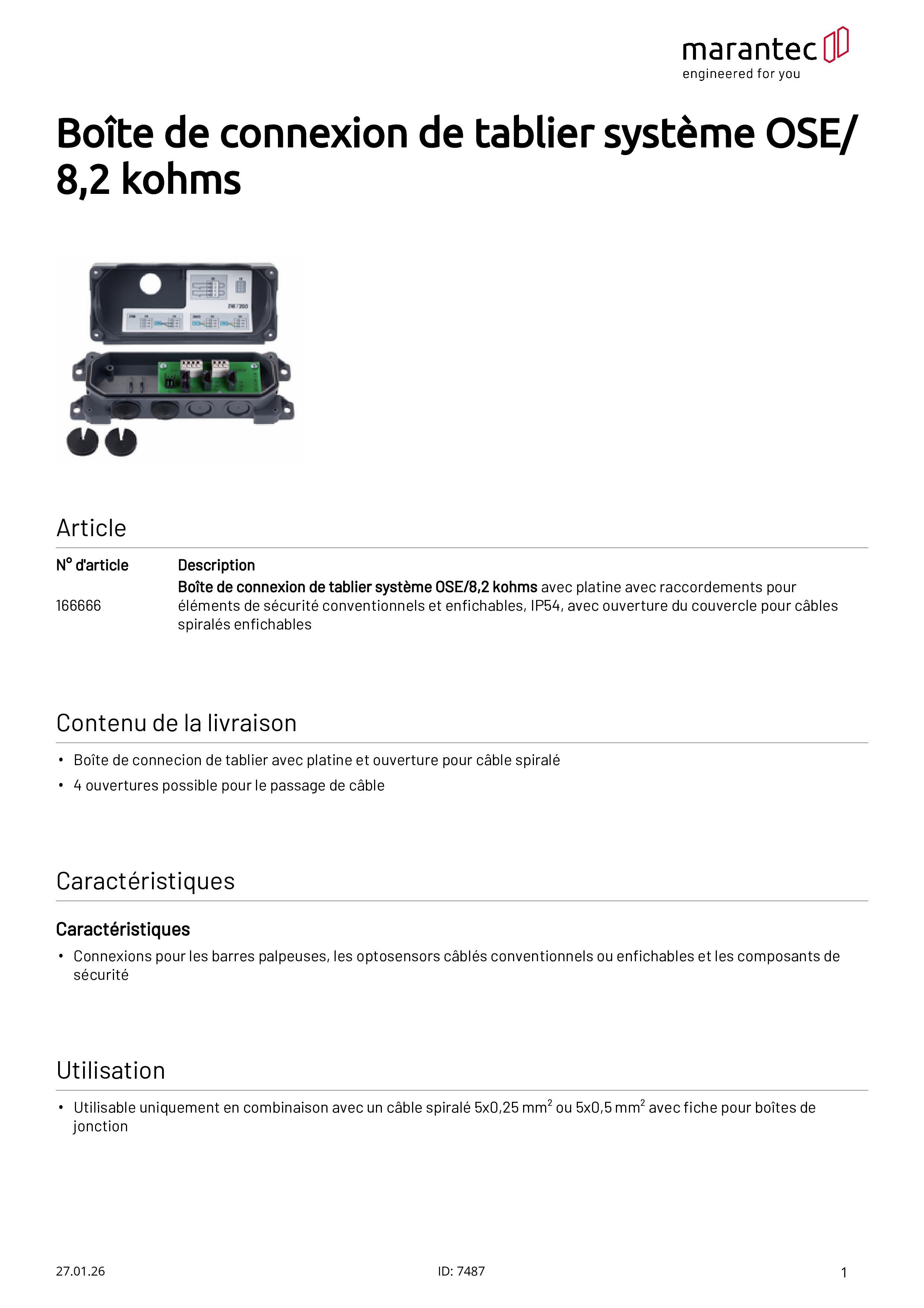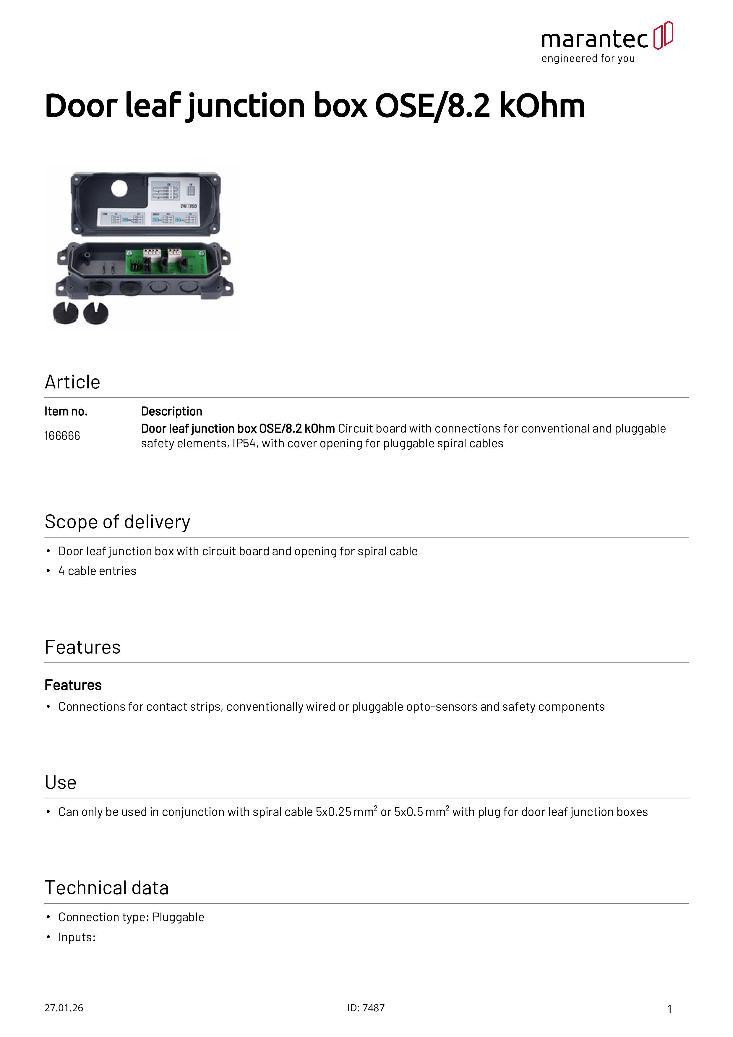 Torblatt-Anschlussdose für OSE/8,2 kOhm (konventionell/steckbar)