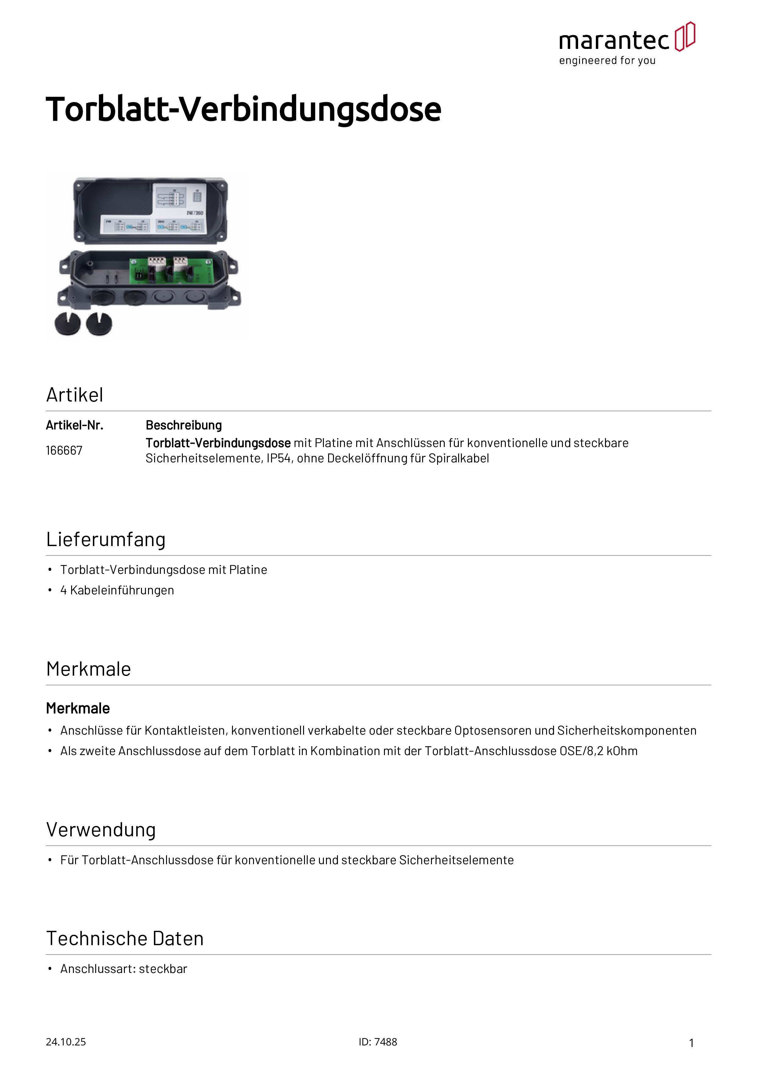 - Als zweite Anschlussdose auf dem Torblatt in Kombination mit der Torblatt-Anschlussdose OSE/8,2 kOhm