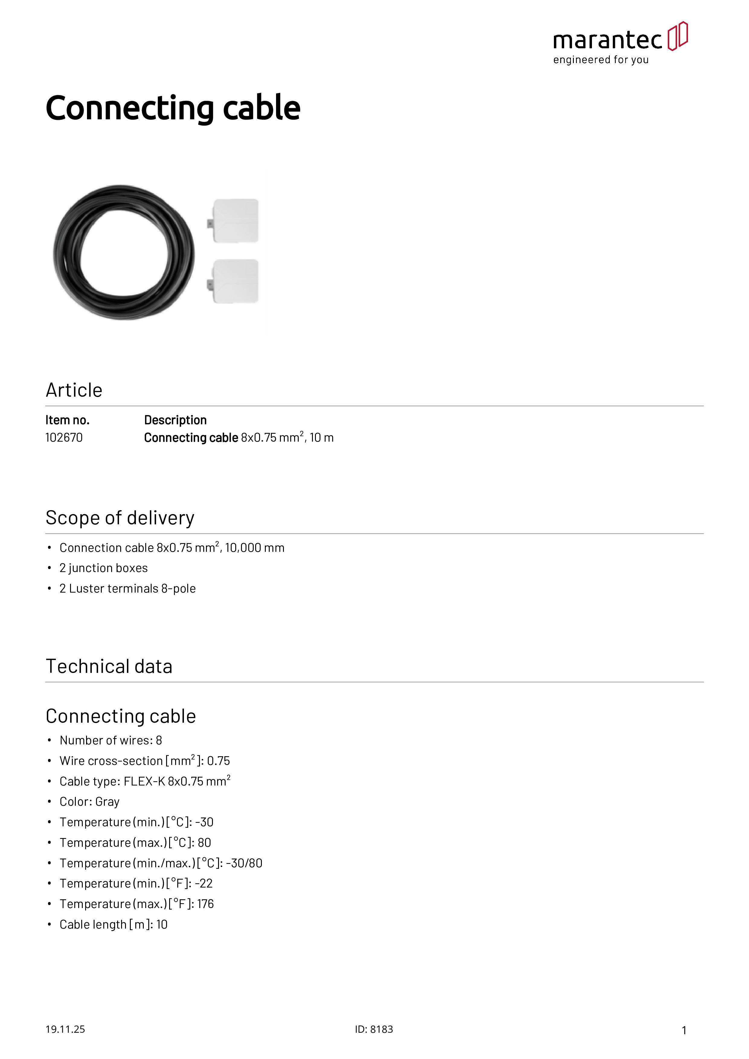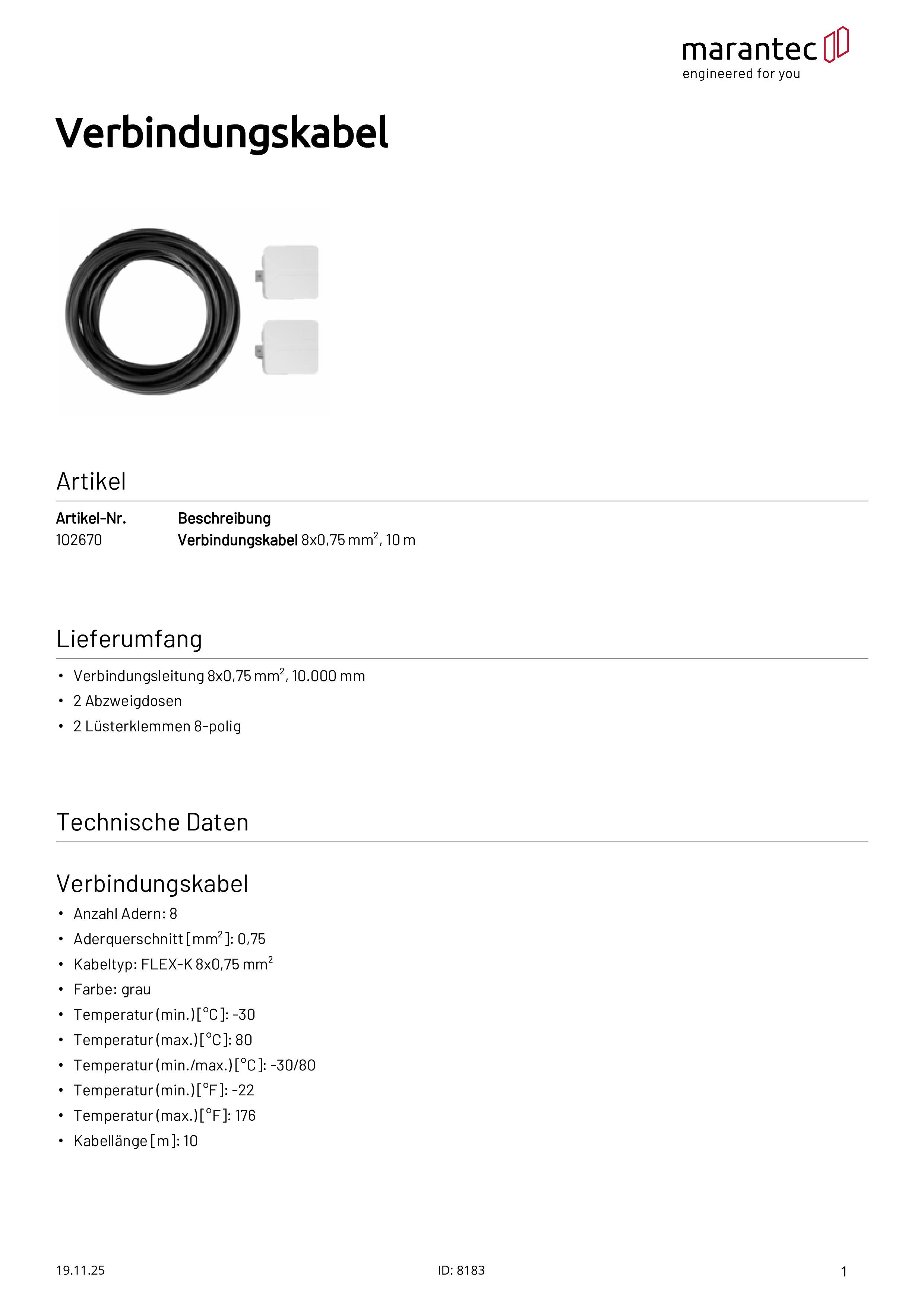 - Verbindungsleitung 8x0,75 mm², 10.000 mm