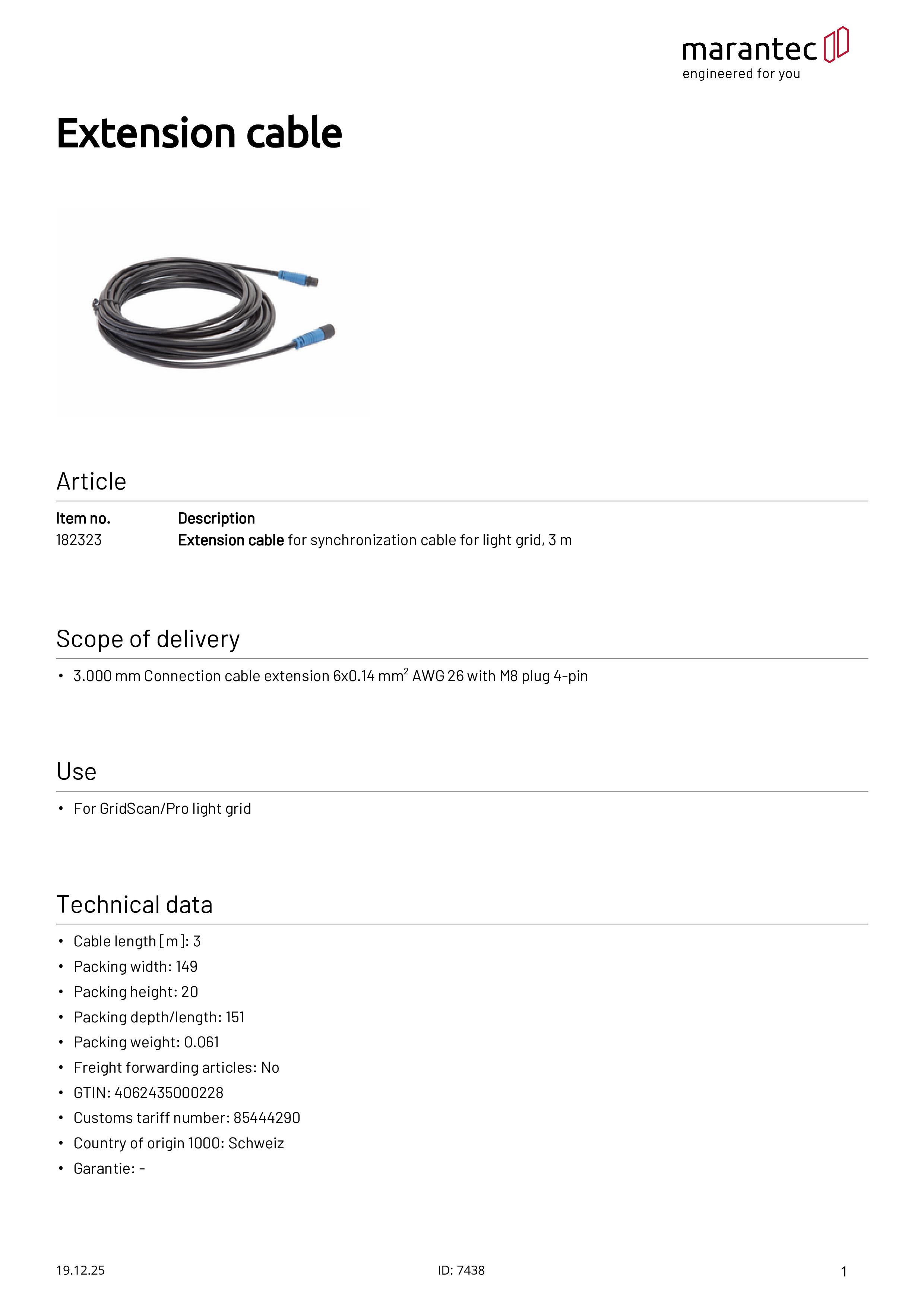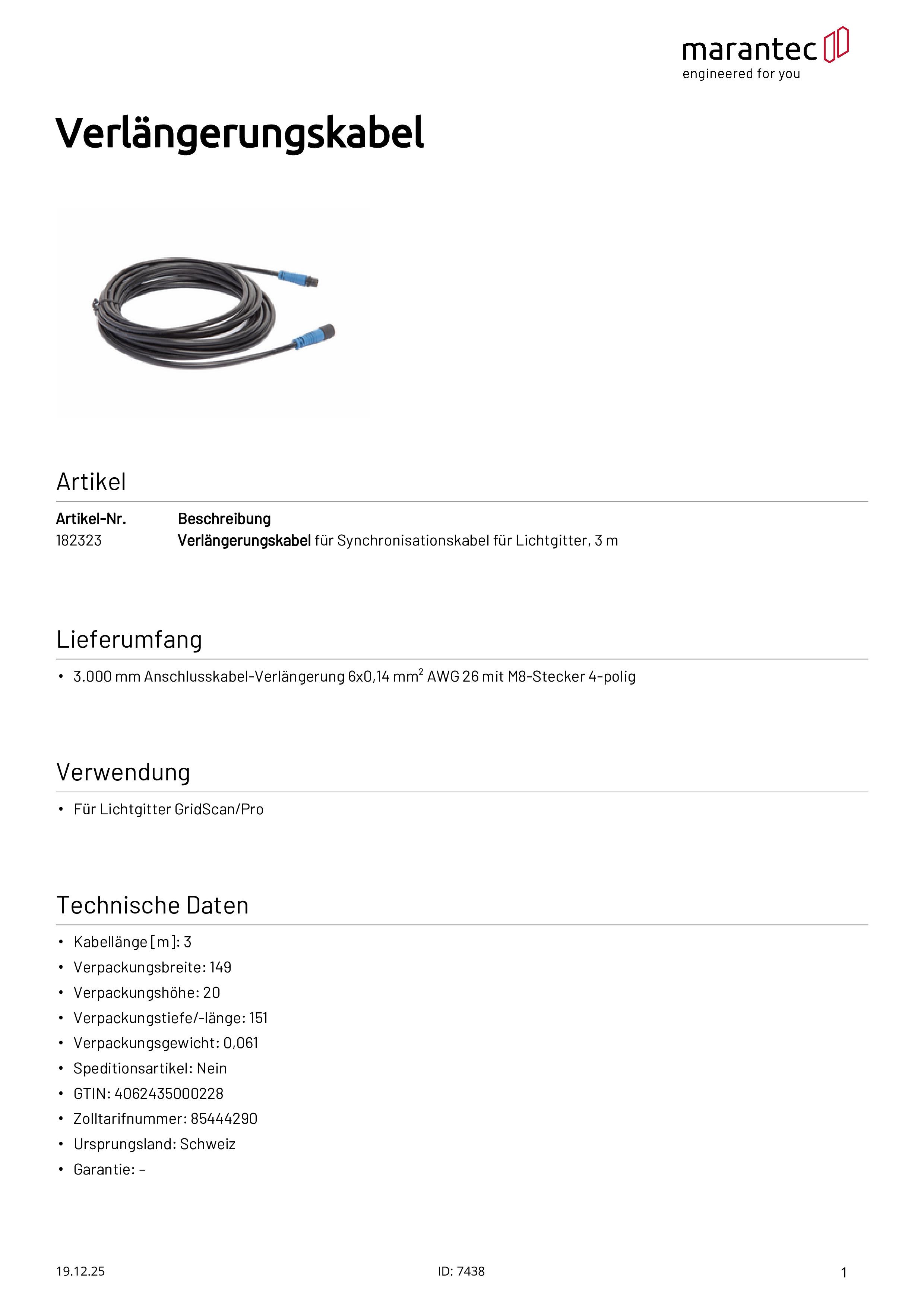 Verlängerungskabel für Synchronisationskabel für GridScan/Pro, 3 m
