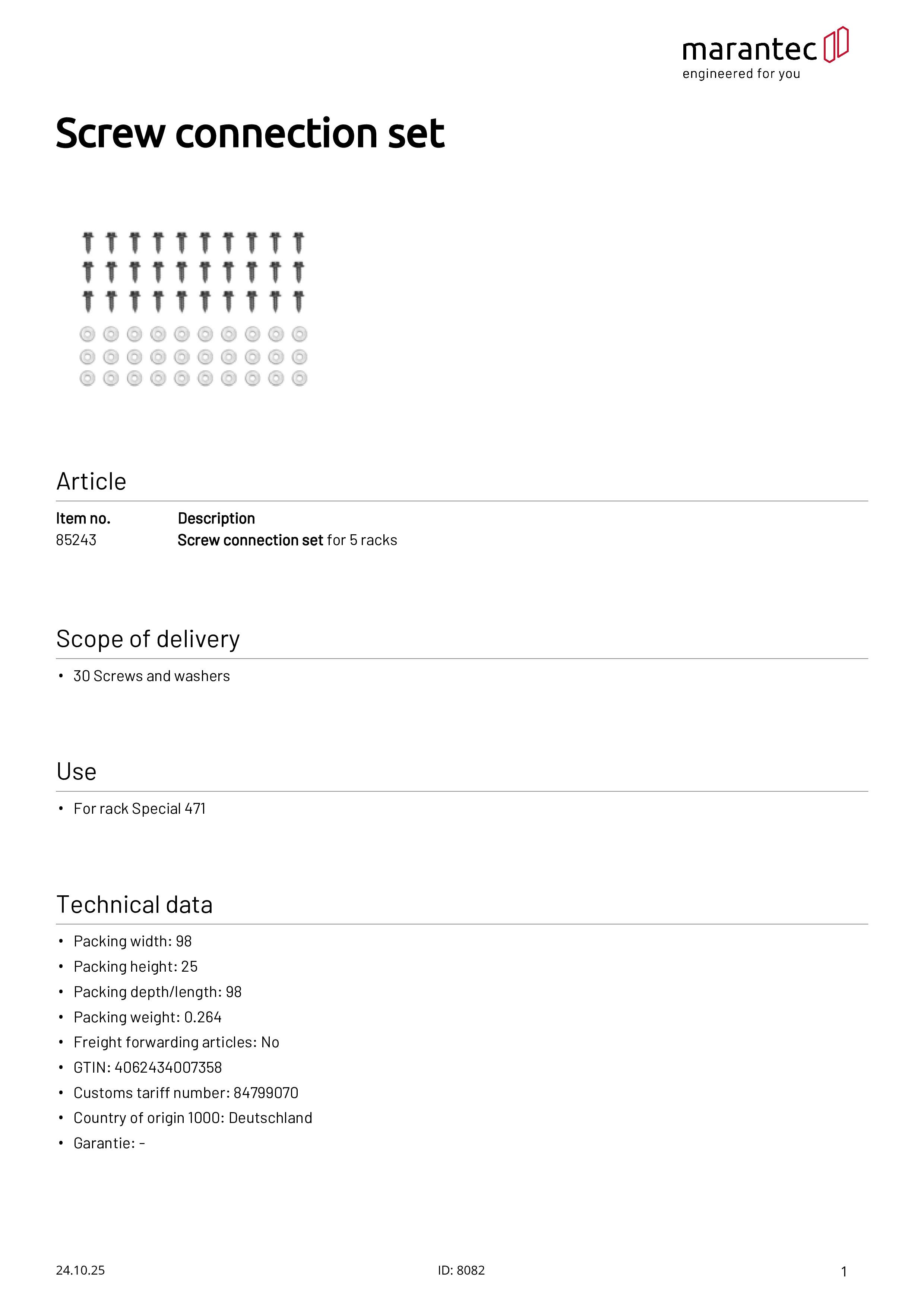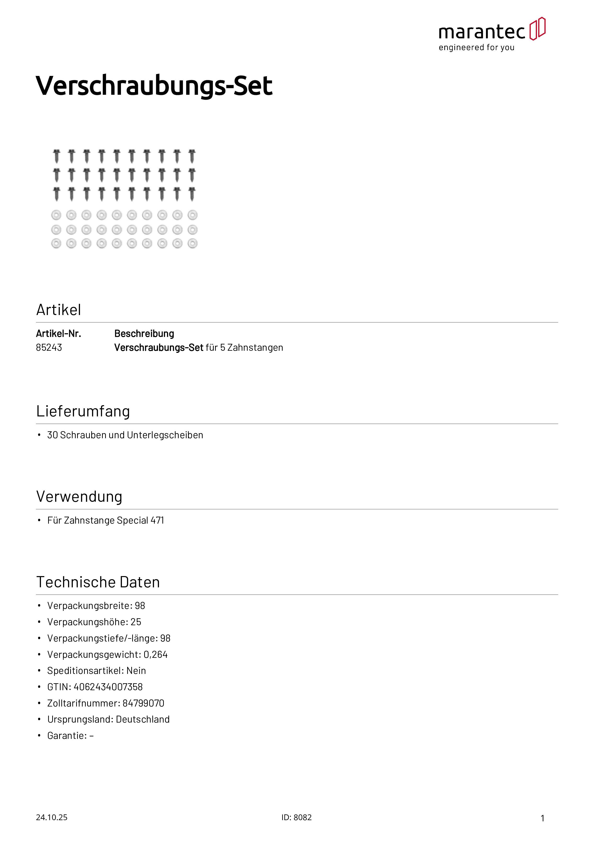 Verschraubungs-Set für 5 Zahnstangen