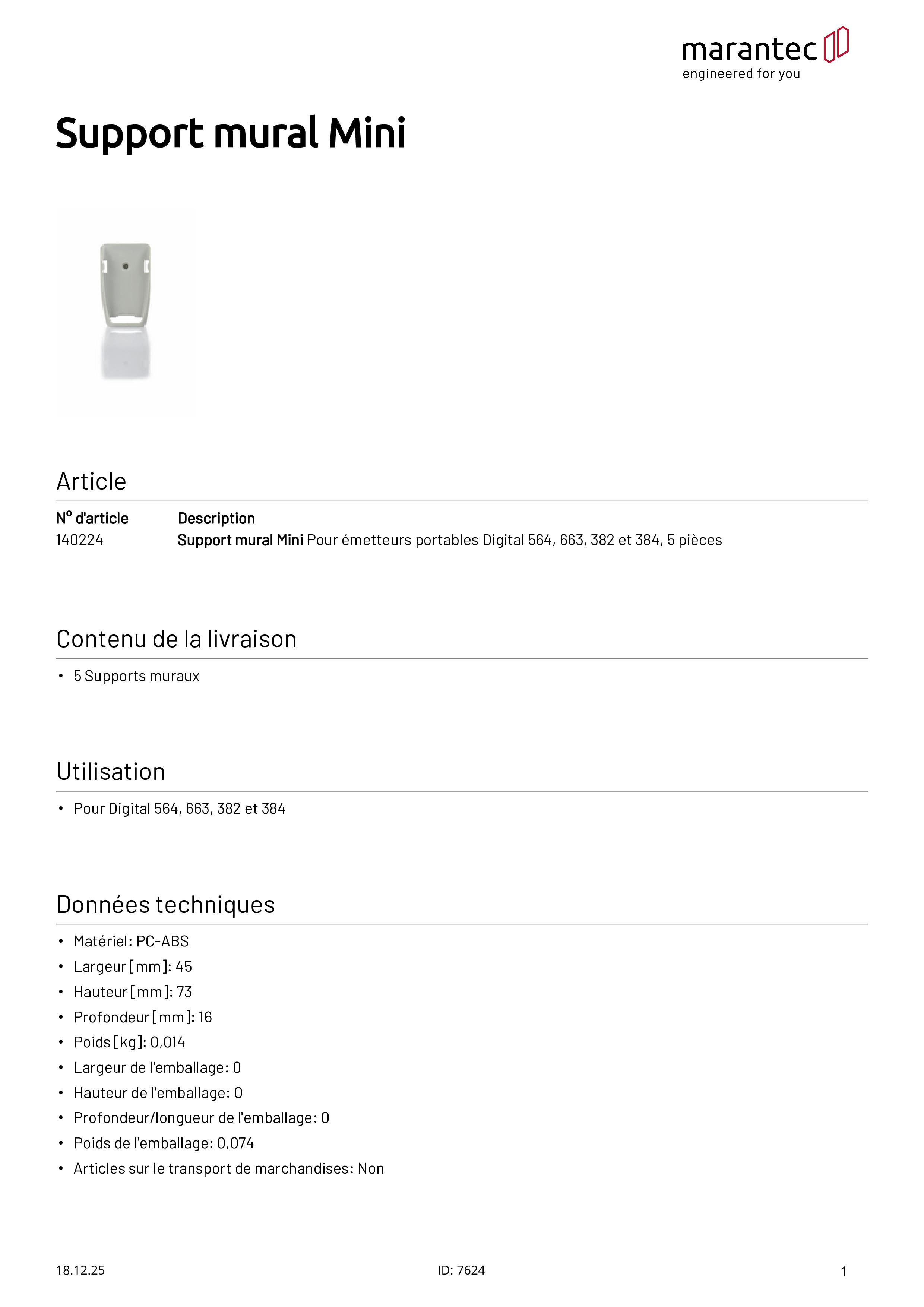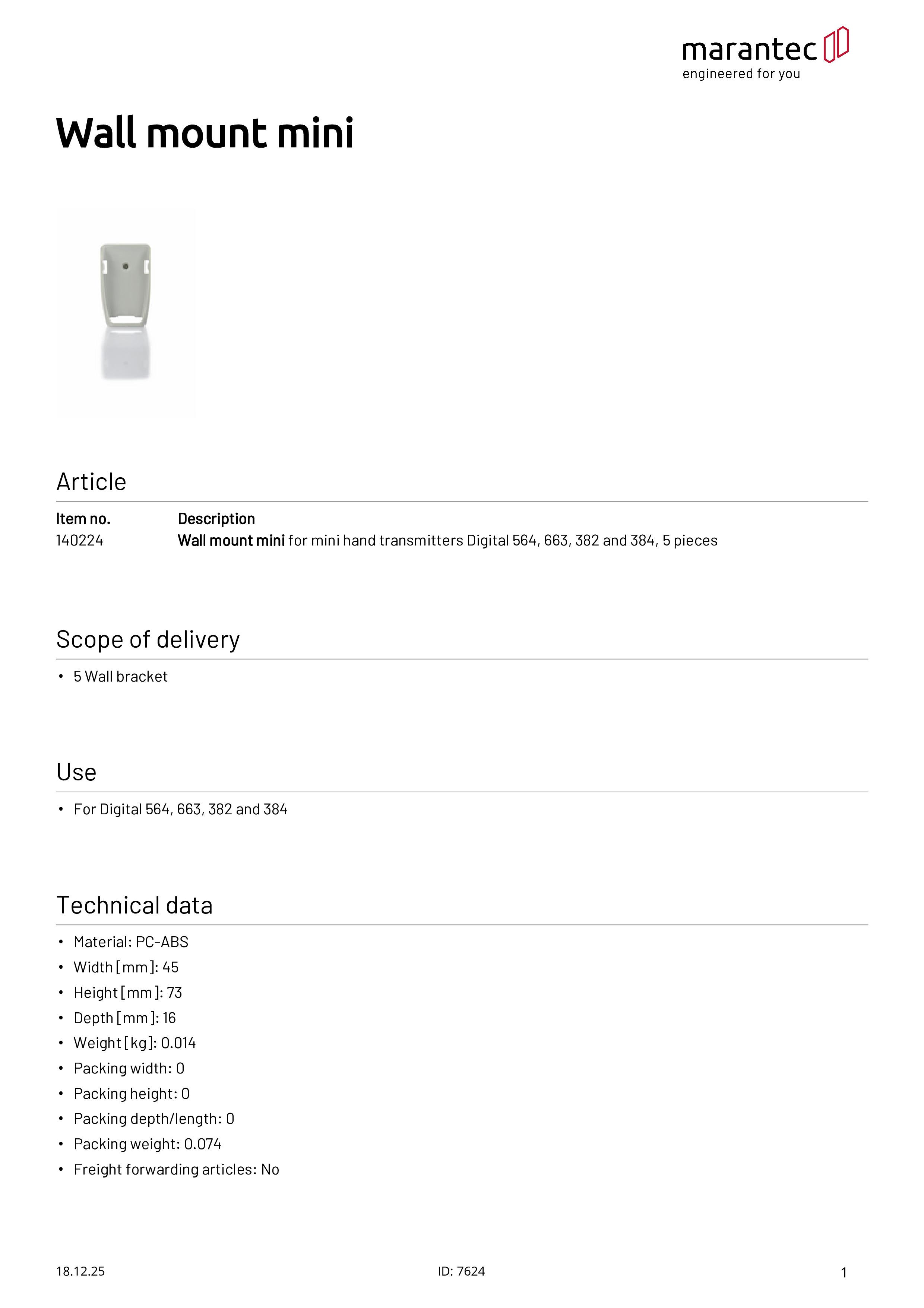 Wandhalter Mini für Mini-Handsender Digital 564/663/382/384, 5er-Set