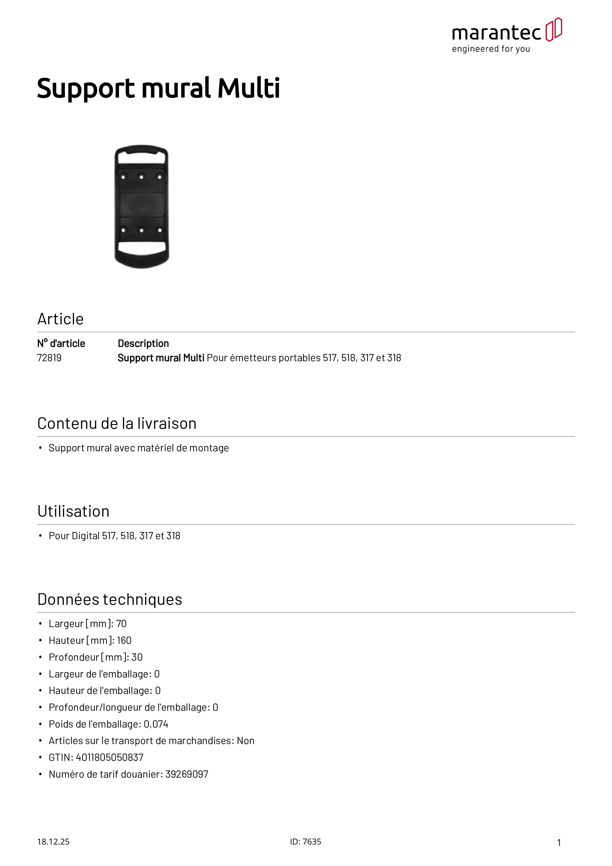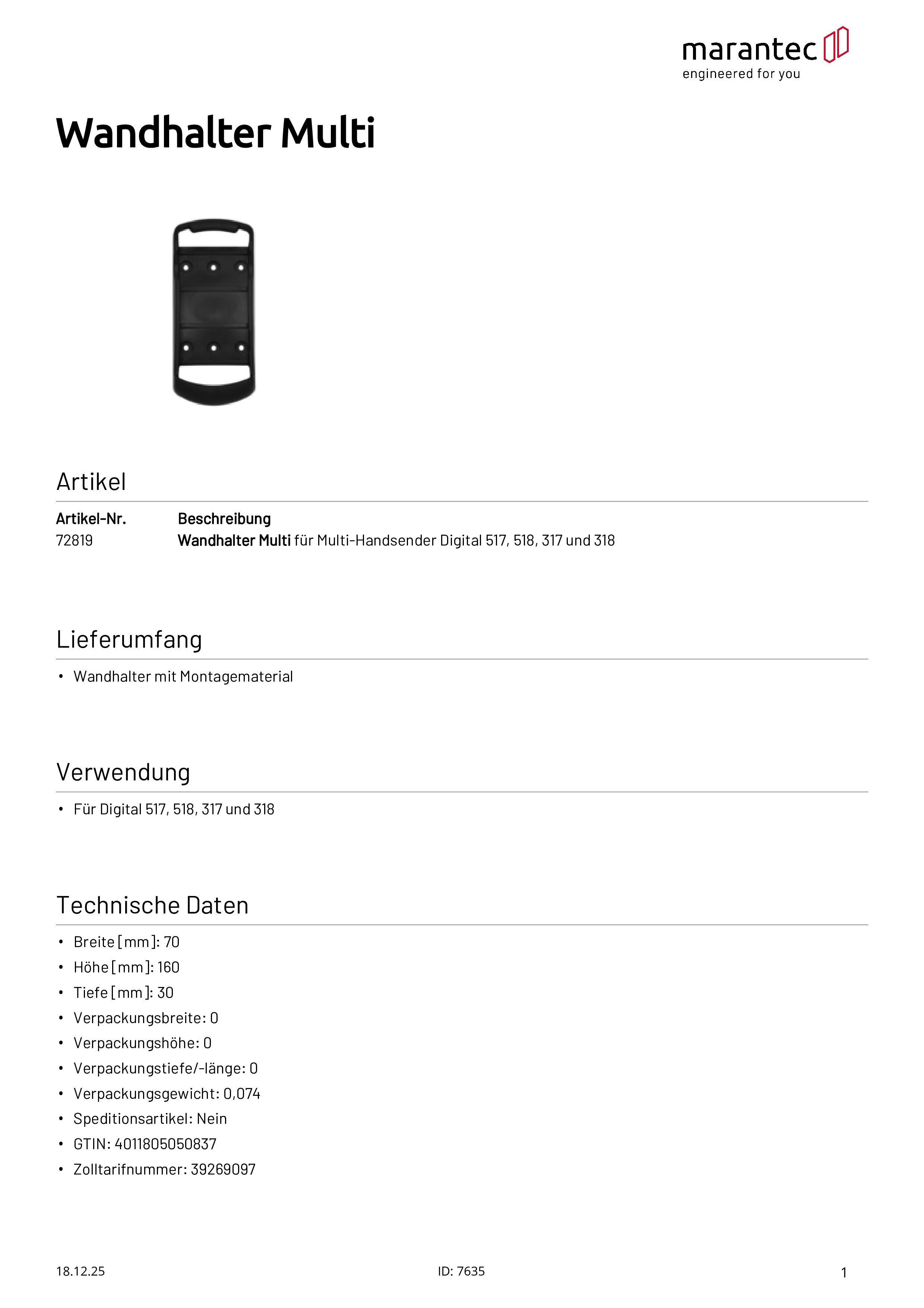 Wandhalter Multi für Multi-Handsender Digital 517/518/317/318