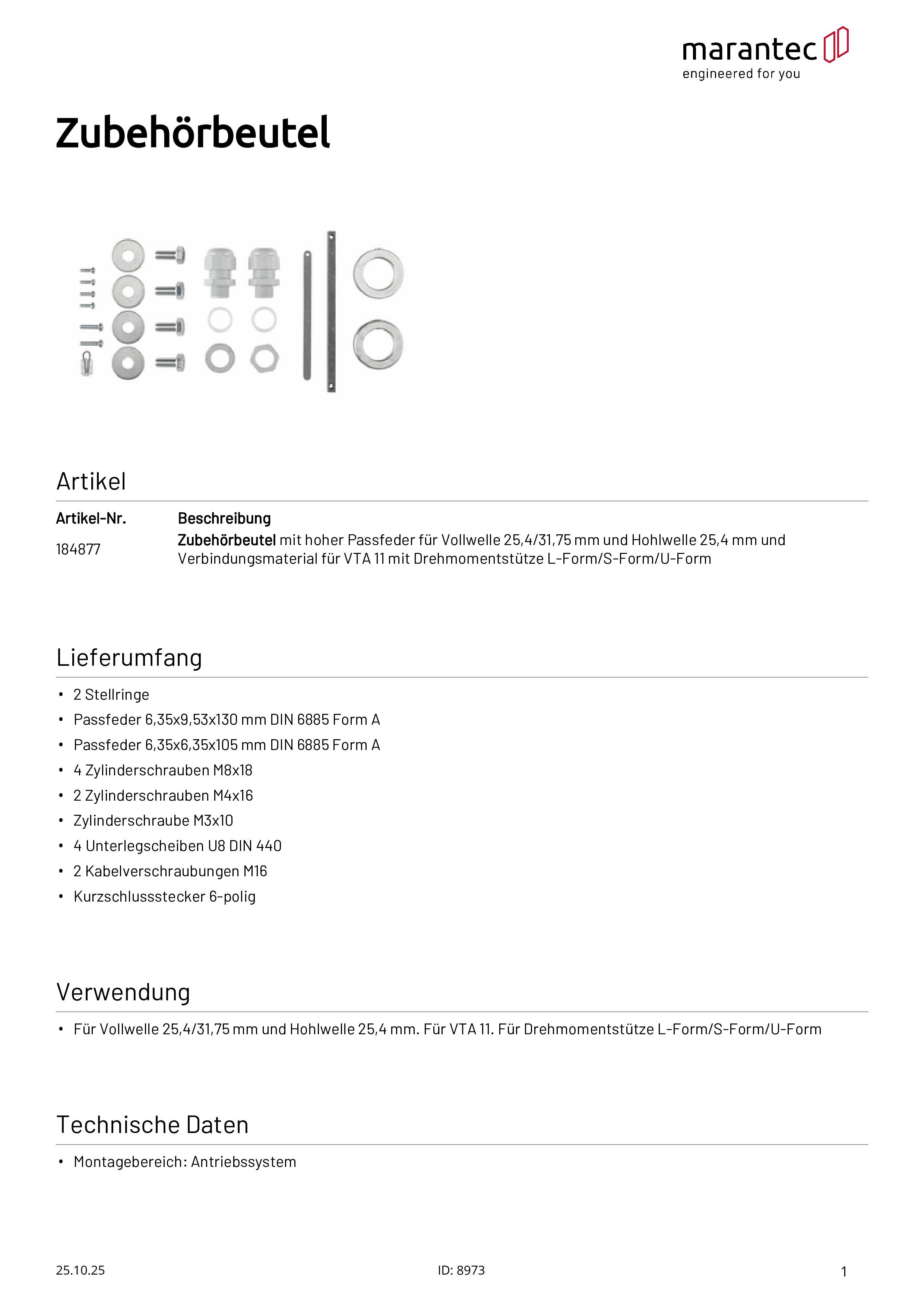 Zubehörbeutel für VTA 11 mit Drehmomentstütze L-/S-/U-Form