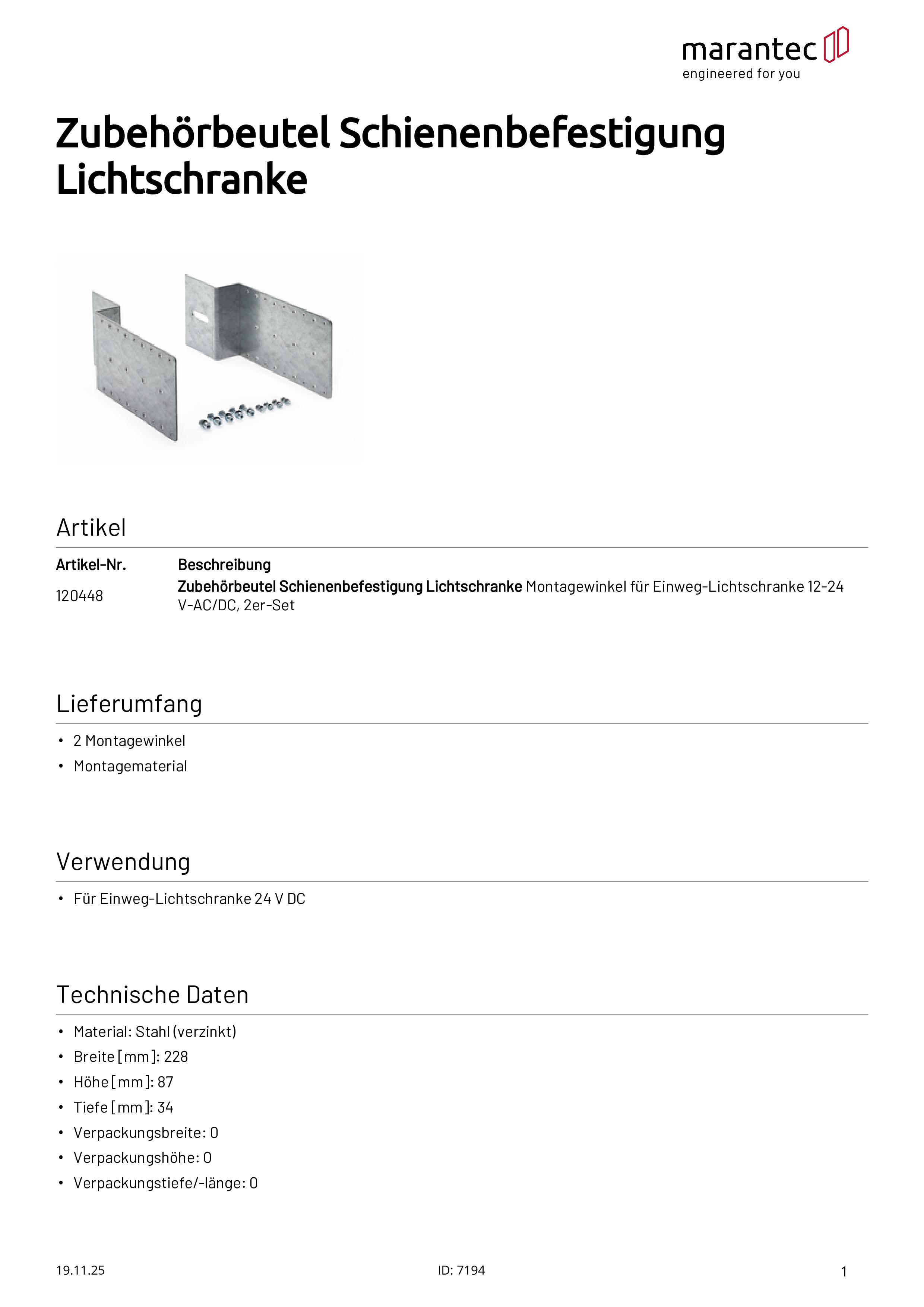 Montagewinkel für Einweg-Lichtschranke 12-24 V-AC/DC, 2er-Set
