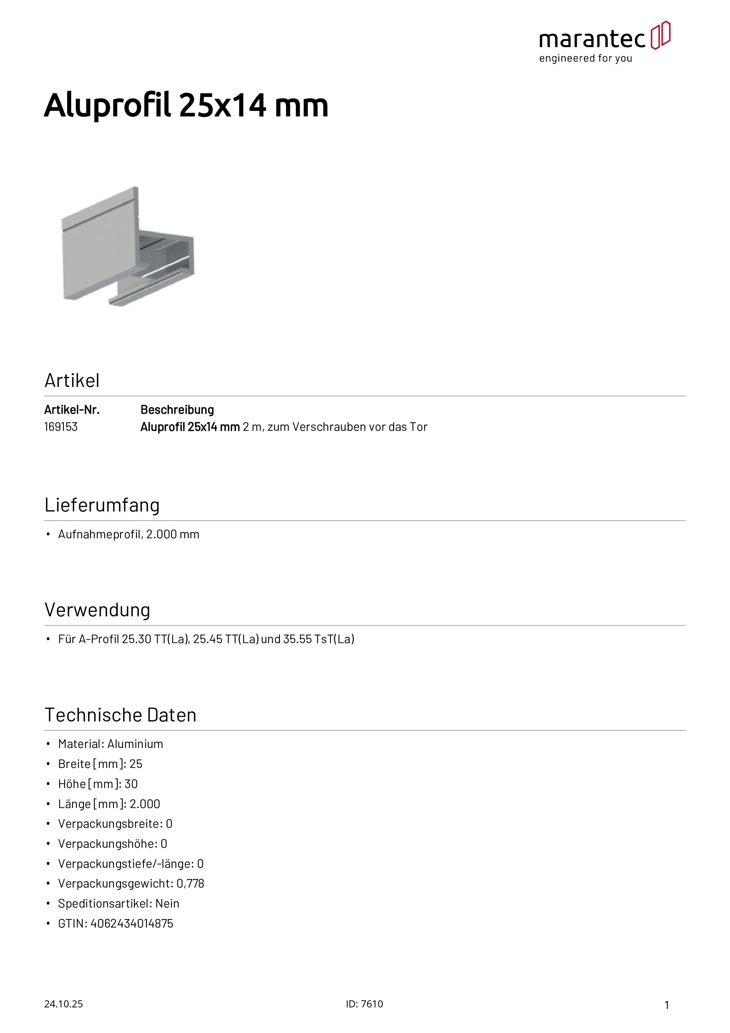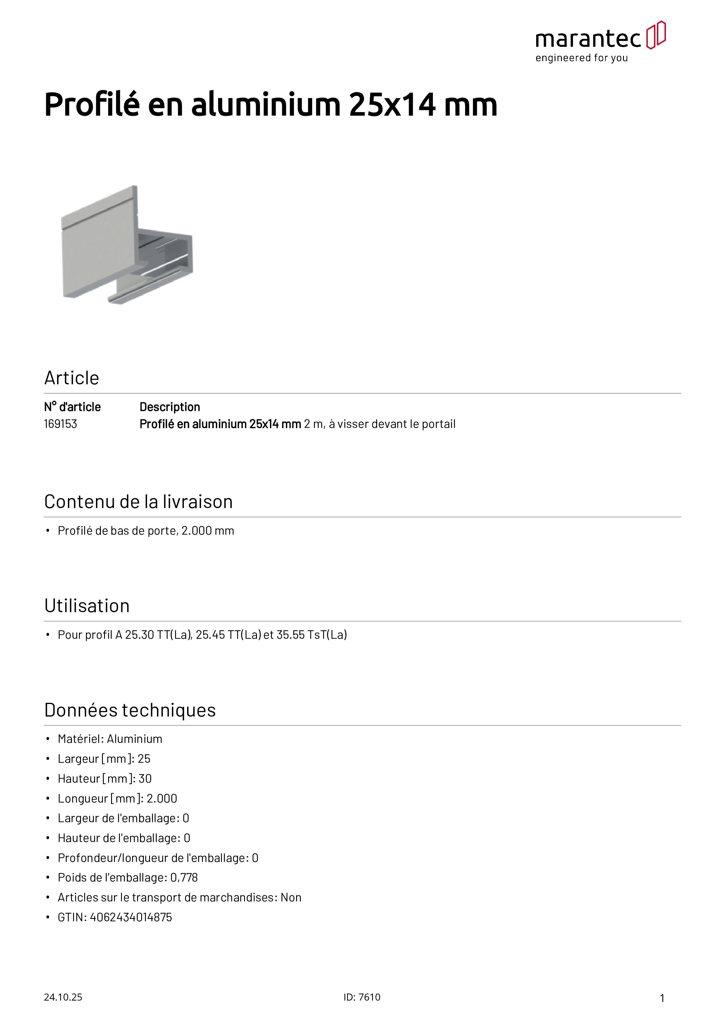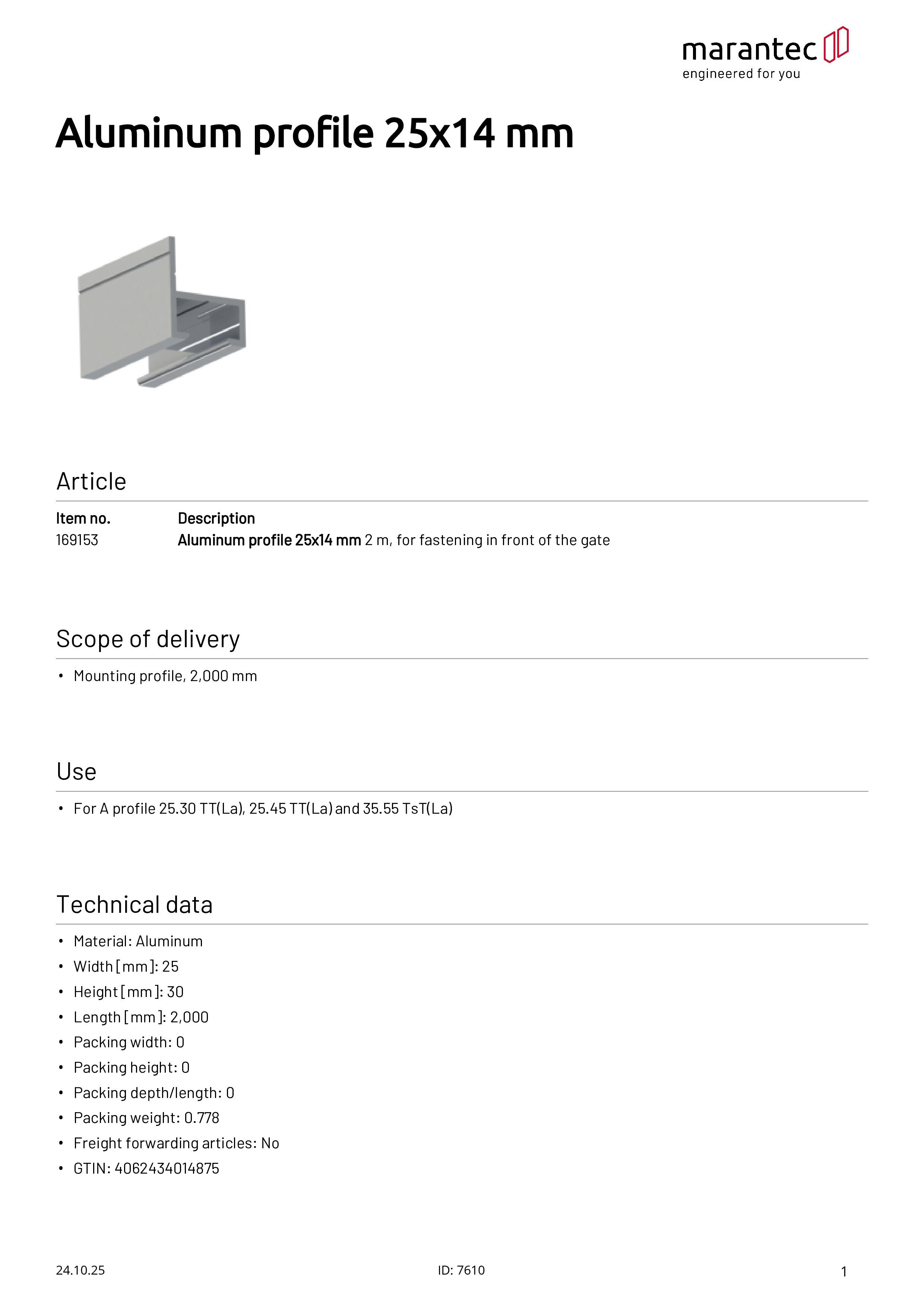 Aluminum profile 25x14 mm, 2 m, for screwing in front of the door