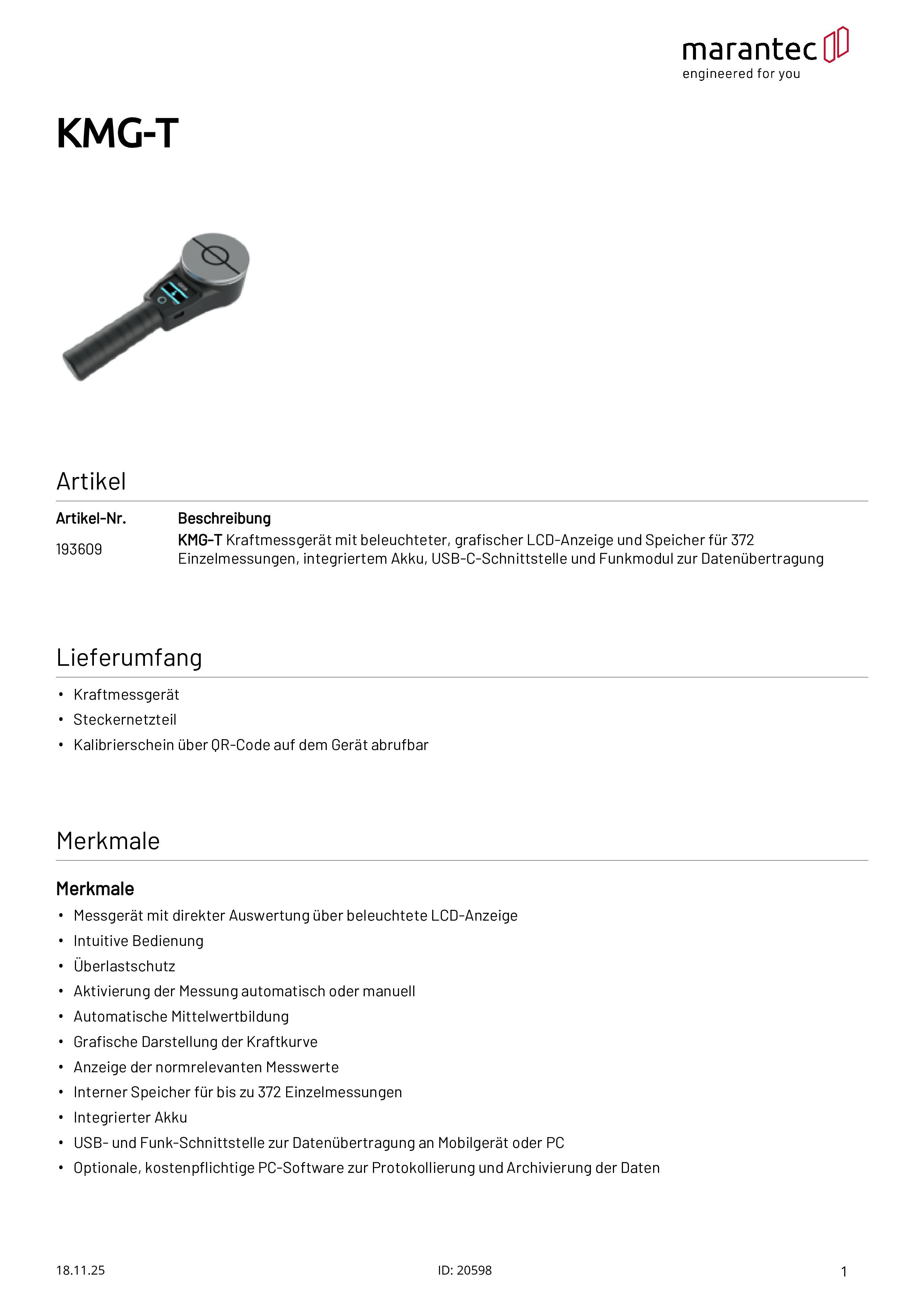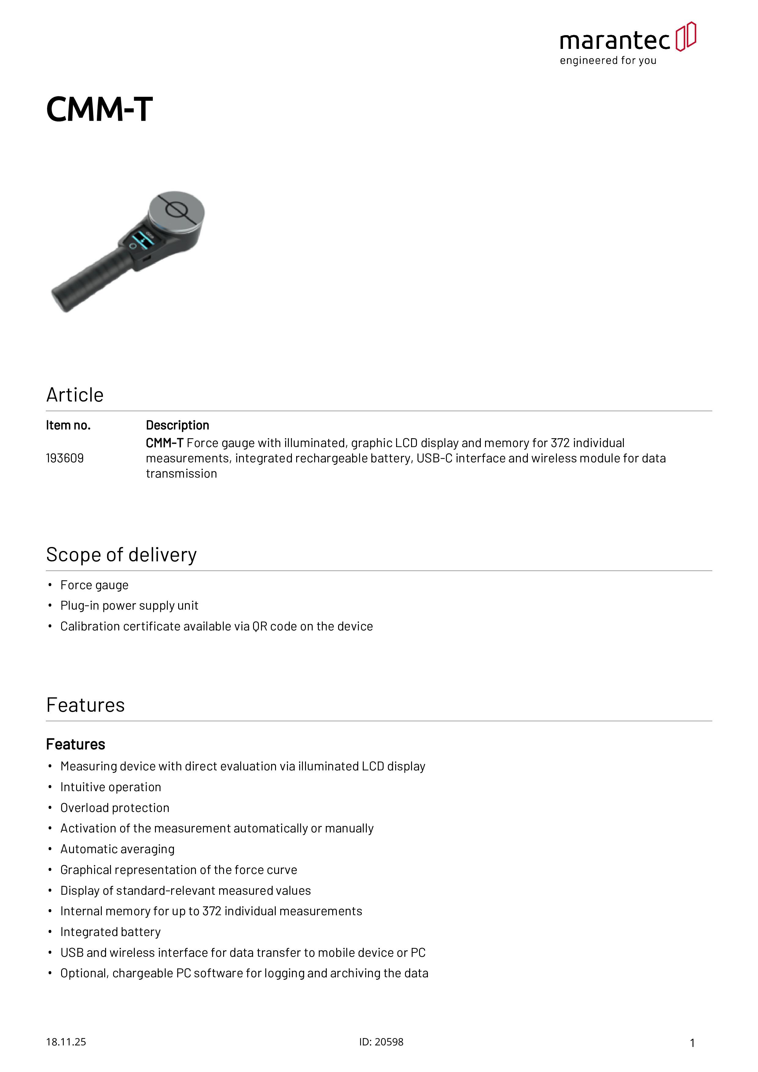 - Optional, chargeable PC software and app for logging and archiving data in the CMM-VISION.cloud