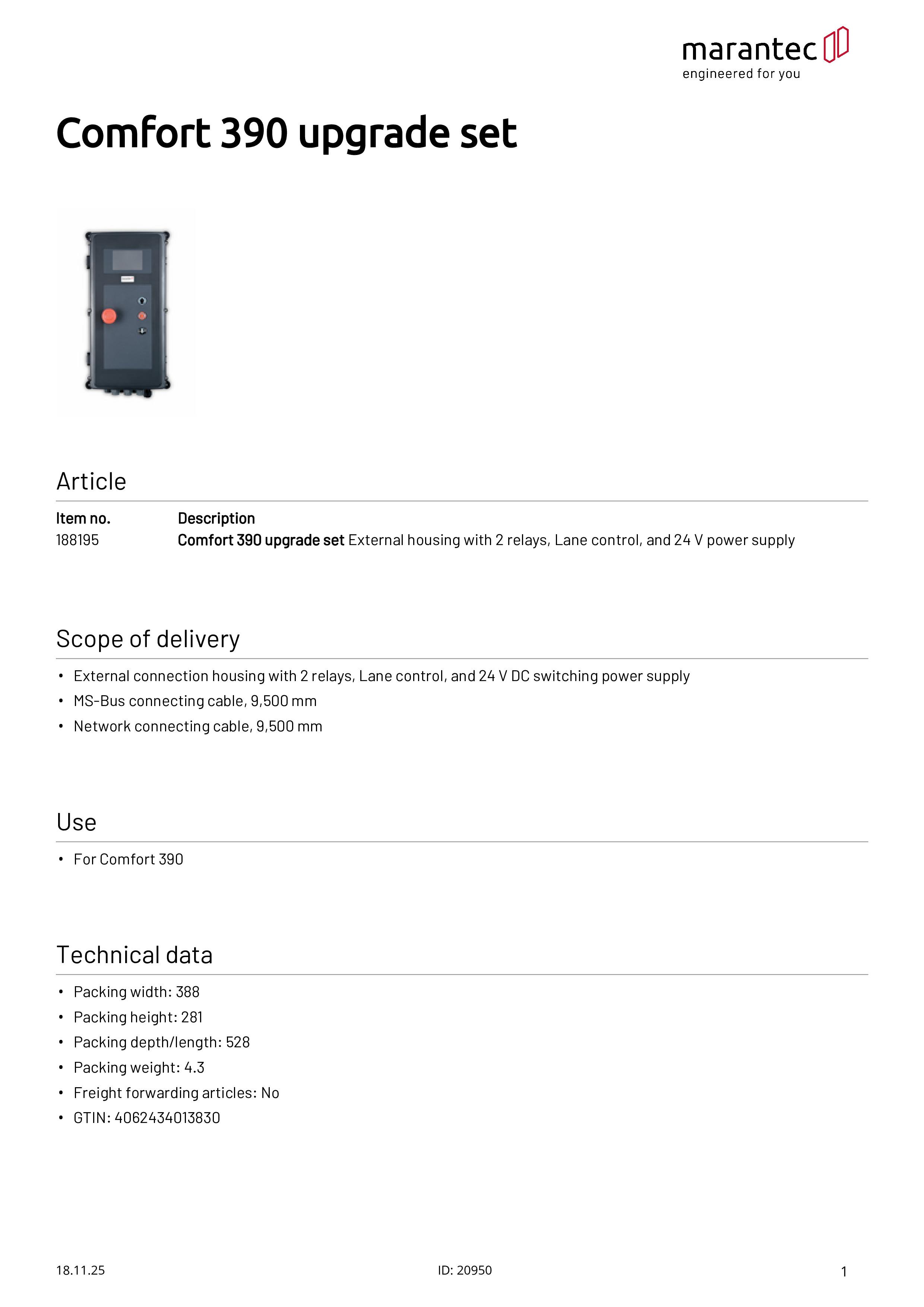 Upgrade set for Comfort 390, external housing with 2 relays, Lane control, and 24 V socket power unit