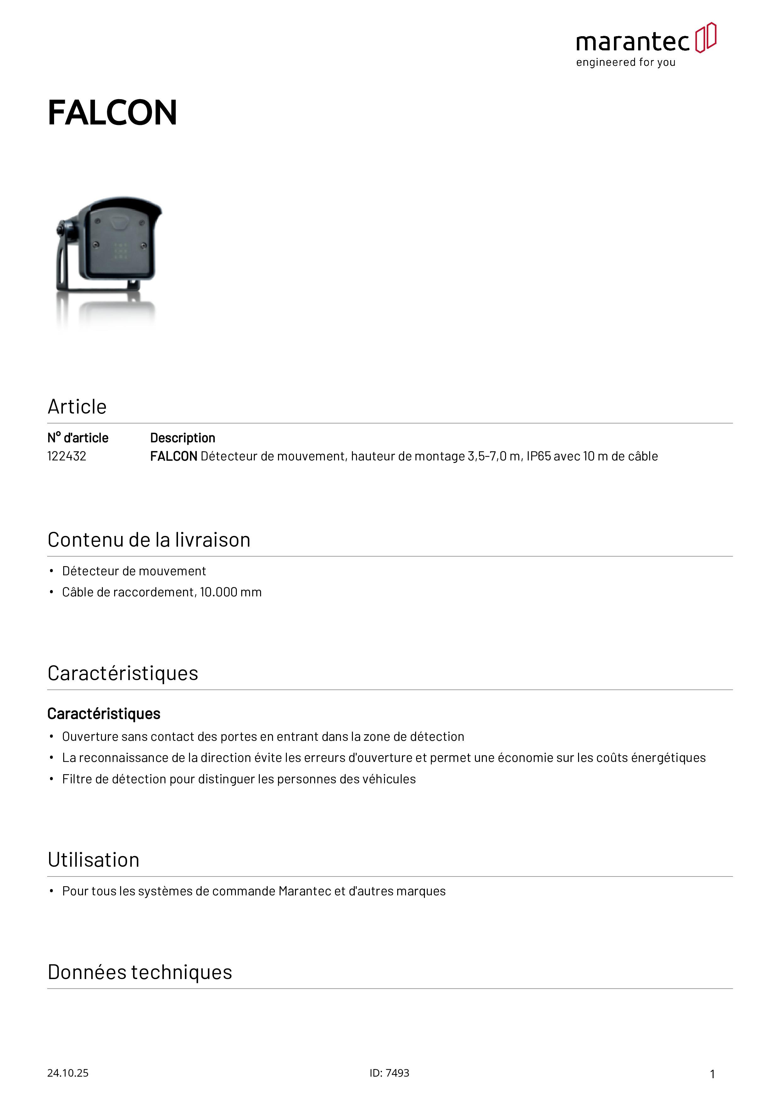 FALCON radar motion detector, 3.5-7.0 m mounting height, with 10 m cable