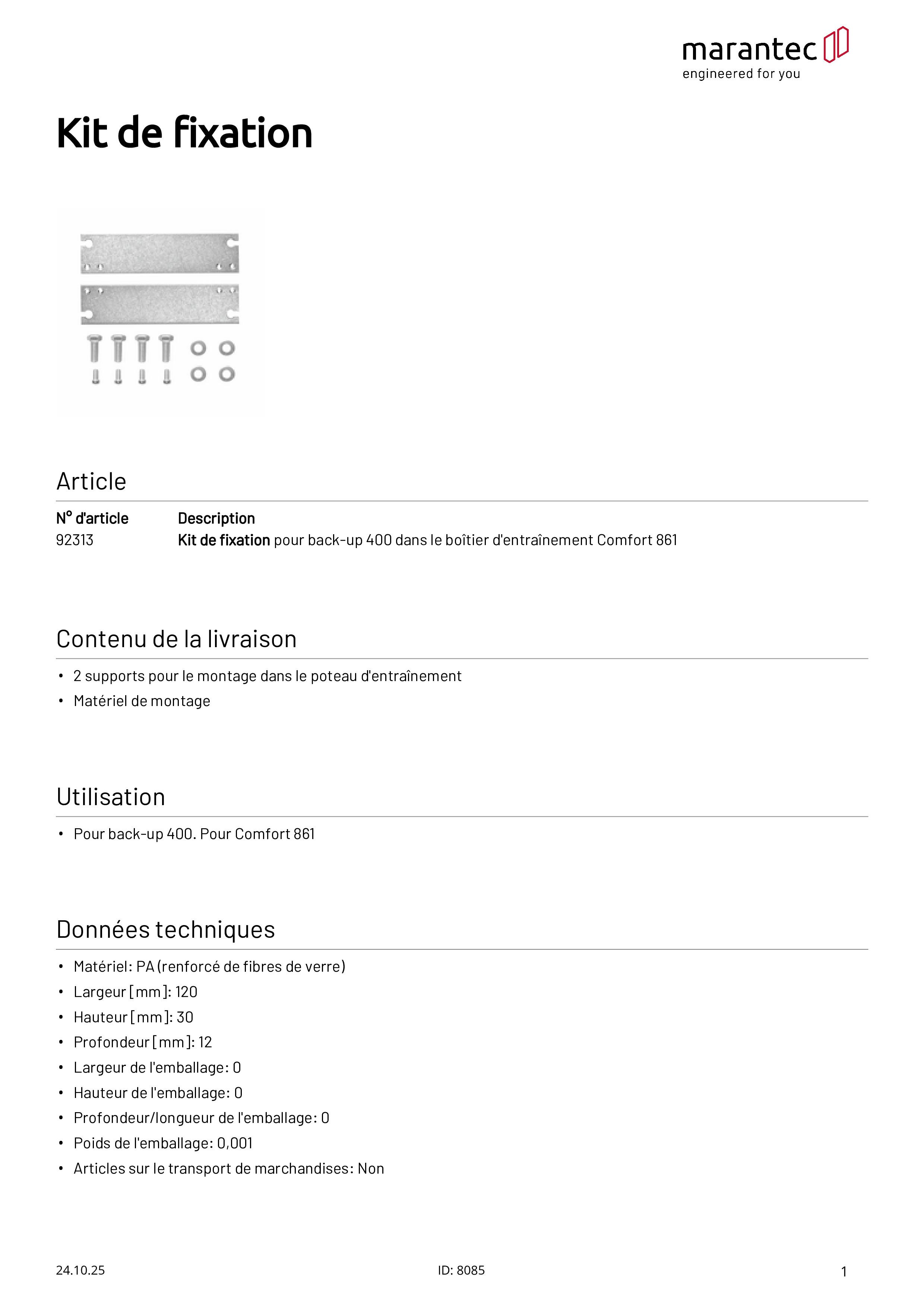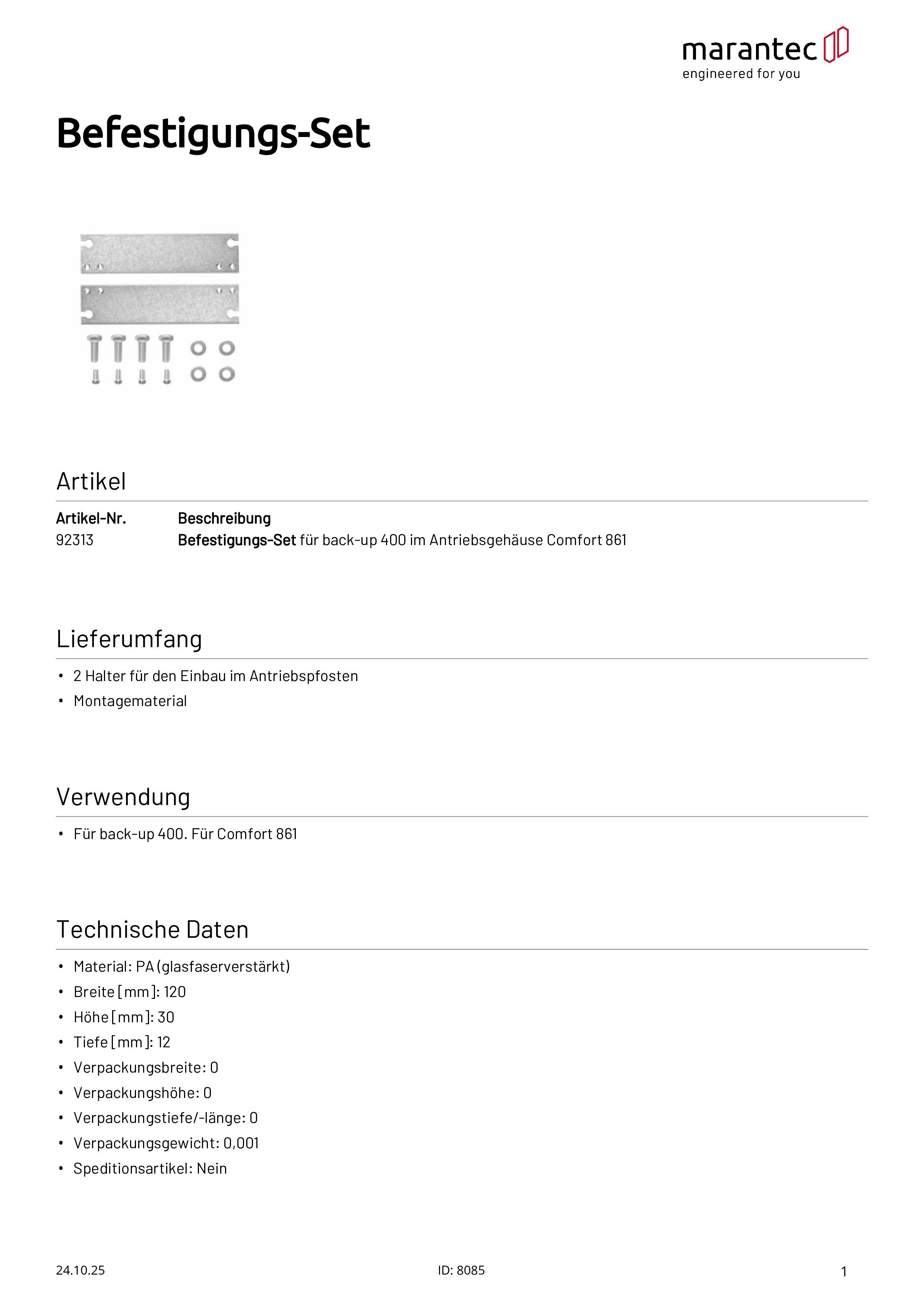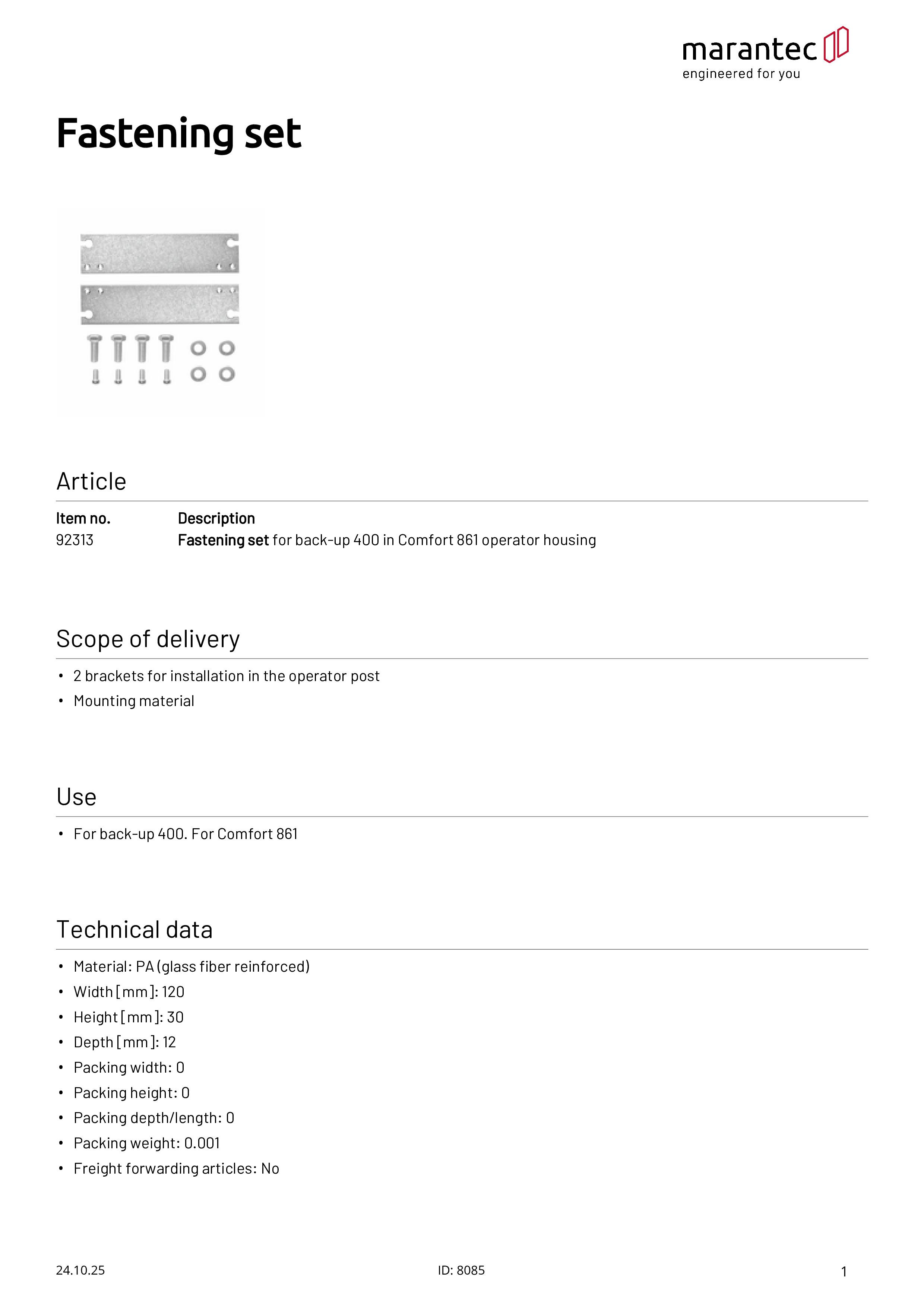 Mounting set for back-up 400 in Comfort 861 operator housing