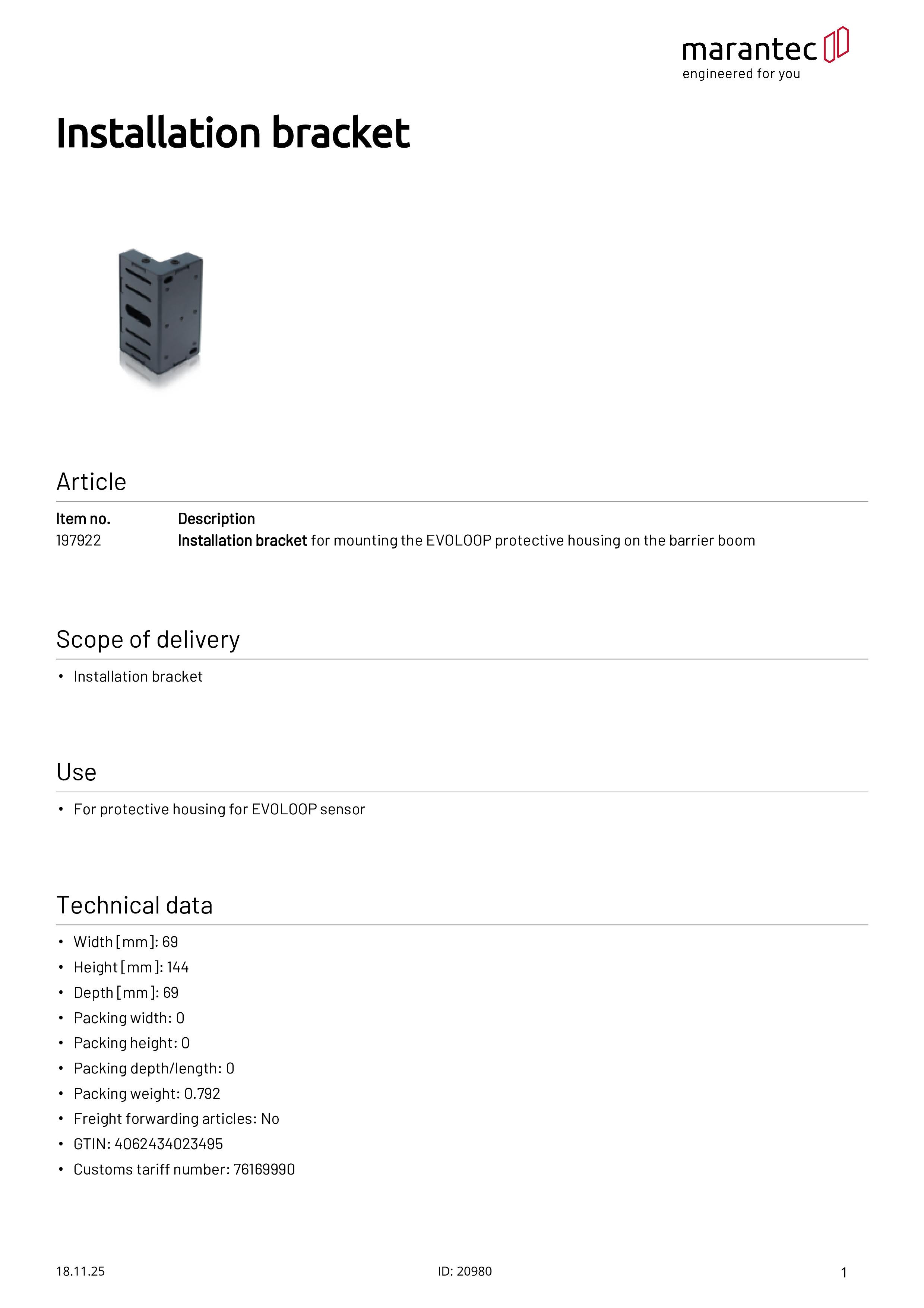 Mounting bracket for mounting the EVOLOOP protective housing on the barrier boom