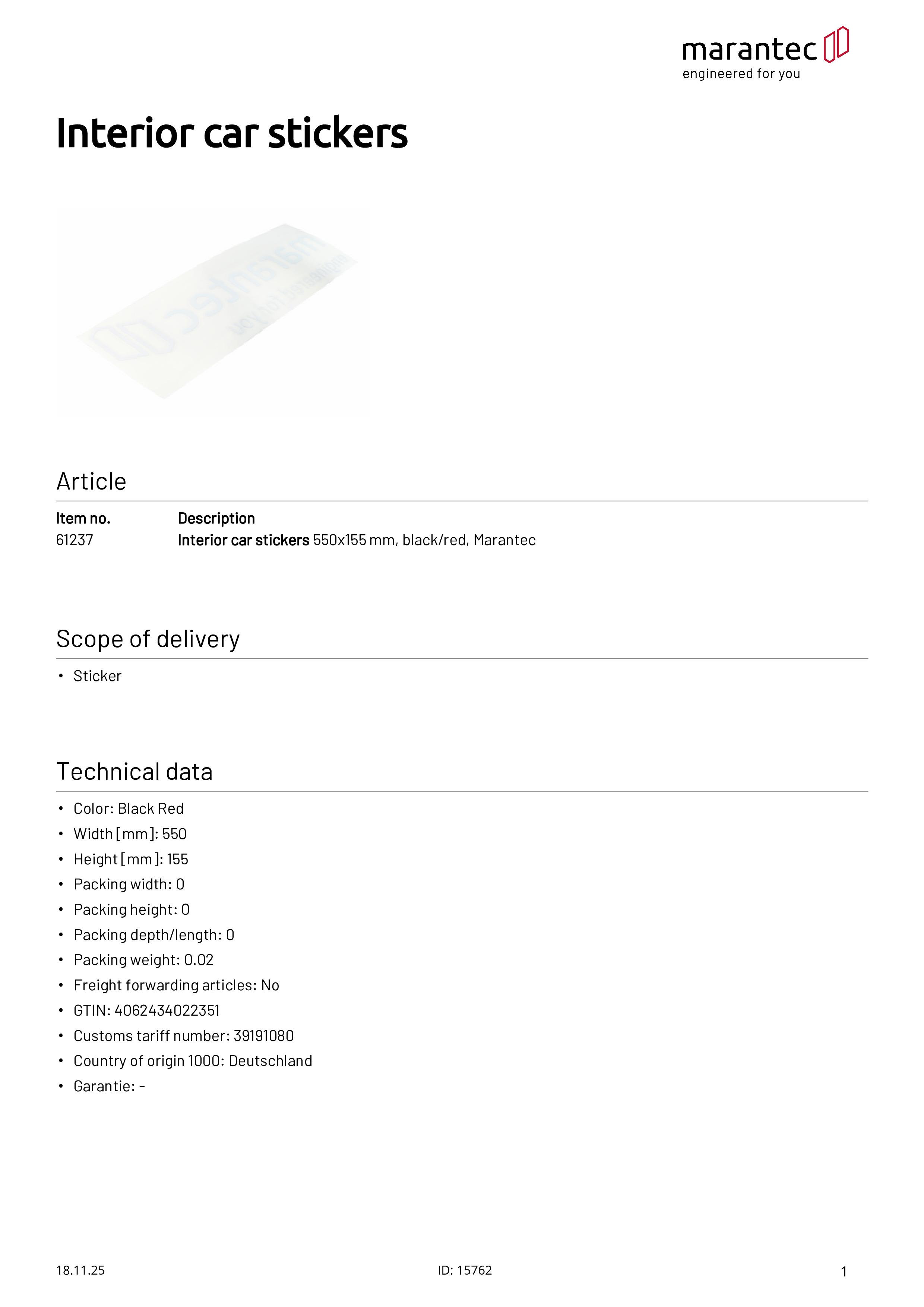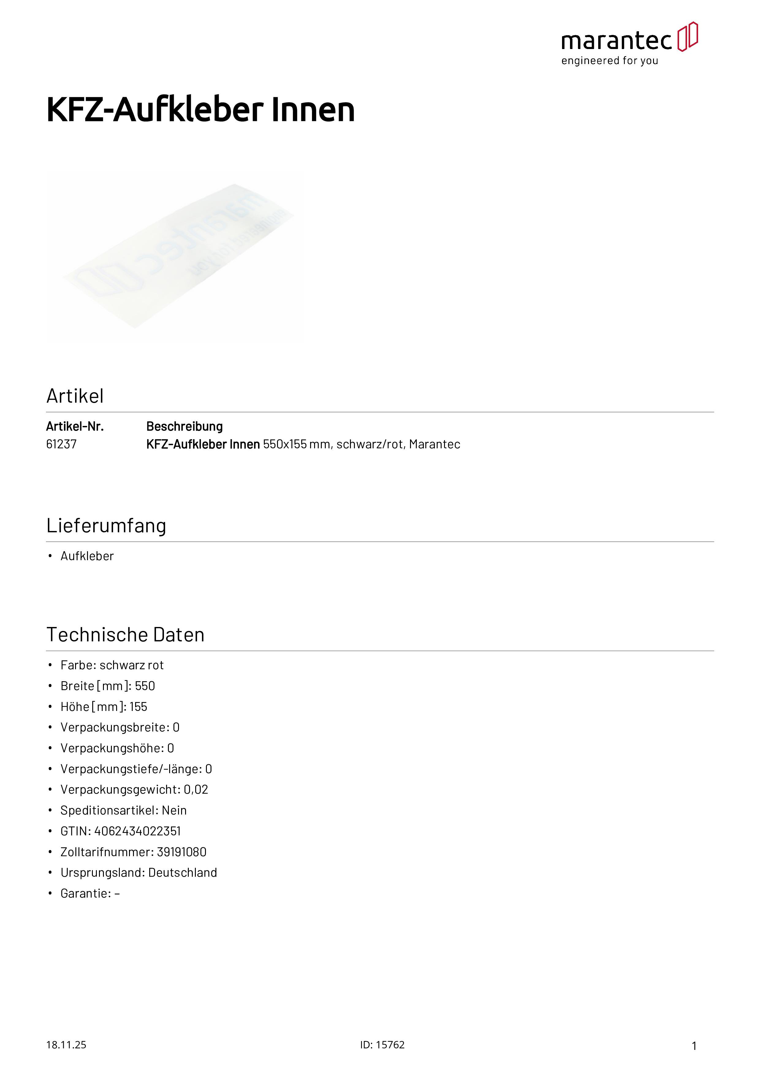 Car sticker Marantec 550x155 mm inside black/red