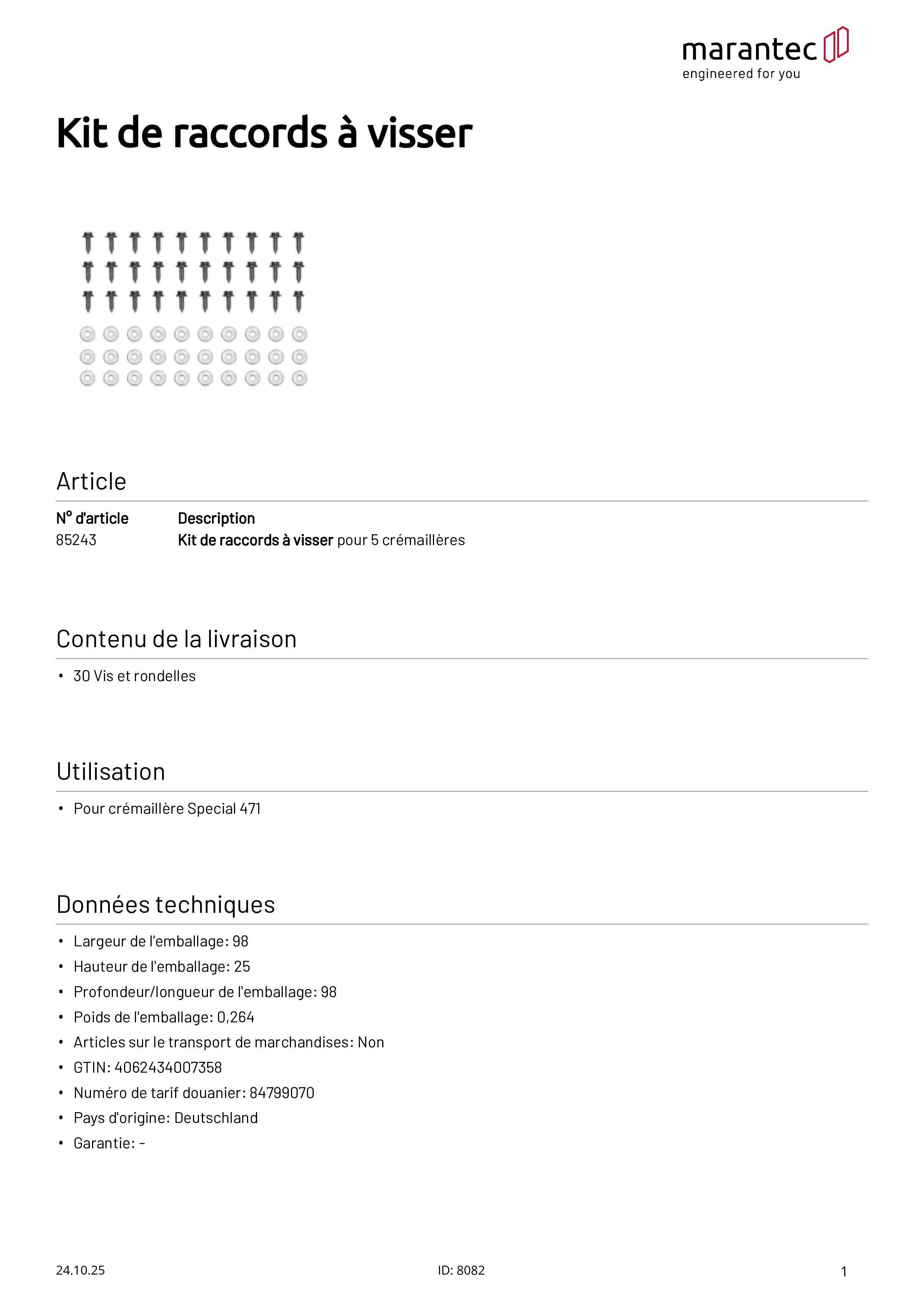 - 30 Screws and washers